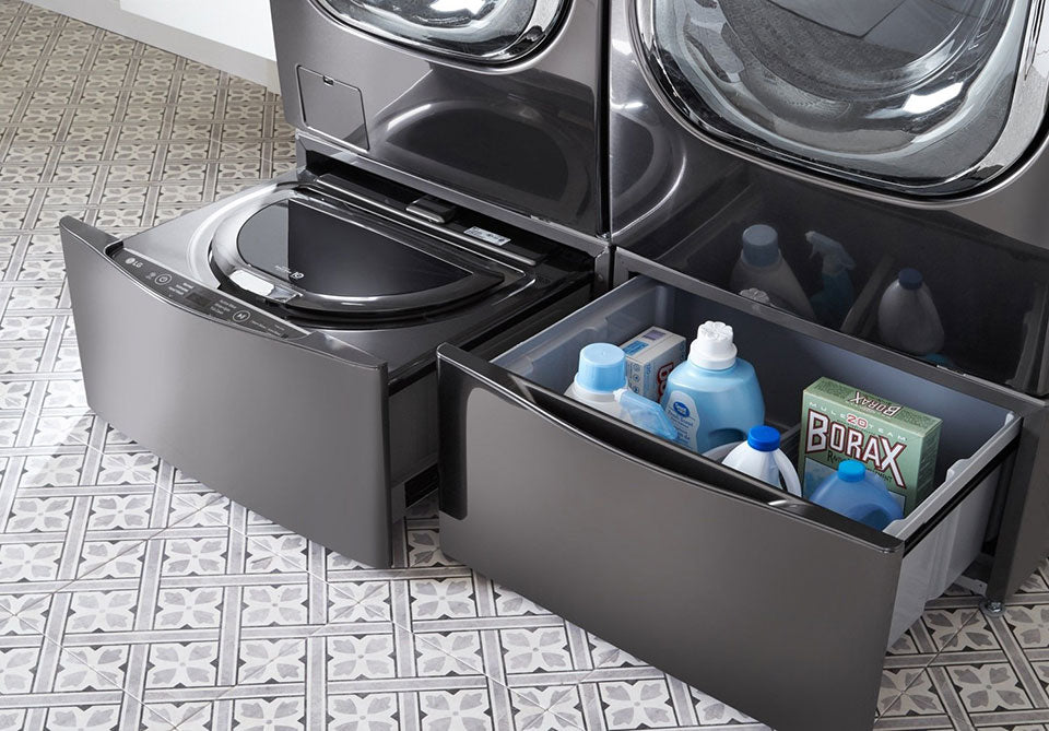 Some of the hottest new models of washers and dryers offer storage built right into the machine to stow away your detergent, dryer sheets, and stain remover spray. Better yet, today’s modern washers and dryers make energy efficiency a top priority, which will save you time and money on busy days at home and when utility bills show up in the mail. A couple energy-saving washer-dryer combos to learn more about are the LG Front-Load Washer and Dryer with Wi-Fi and the Samsung FlexWash™ and FlexDryer™.