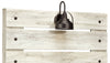 | Détails décoratifs | Des clous décoratifs foncé et des espacements entre les lattes confèrent à la tête de lit une allure rustique. |