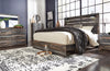 Lit à panneau Abby avec tête de lit, cadre, éclairage à DEL et port USB, brun - format très grand lit