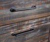 | Quincaillerie | De longues poignées foncé ornent le devant des tiroirs. |