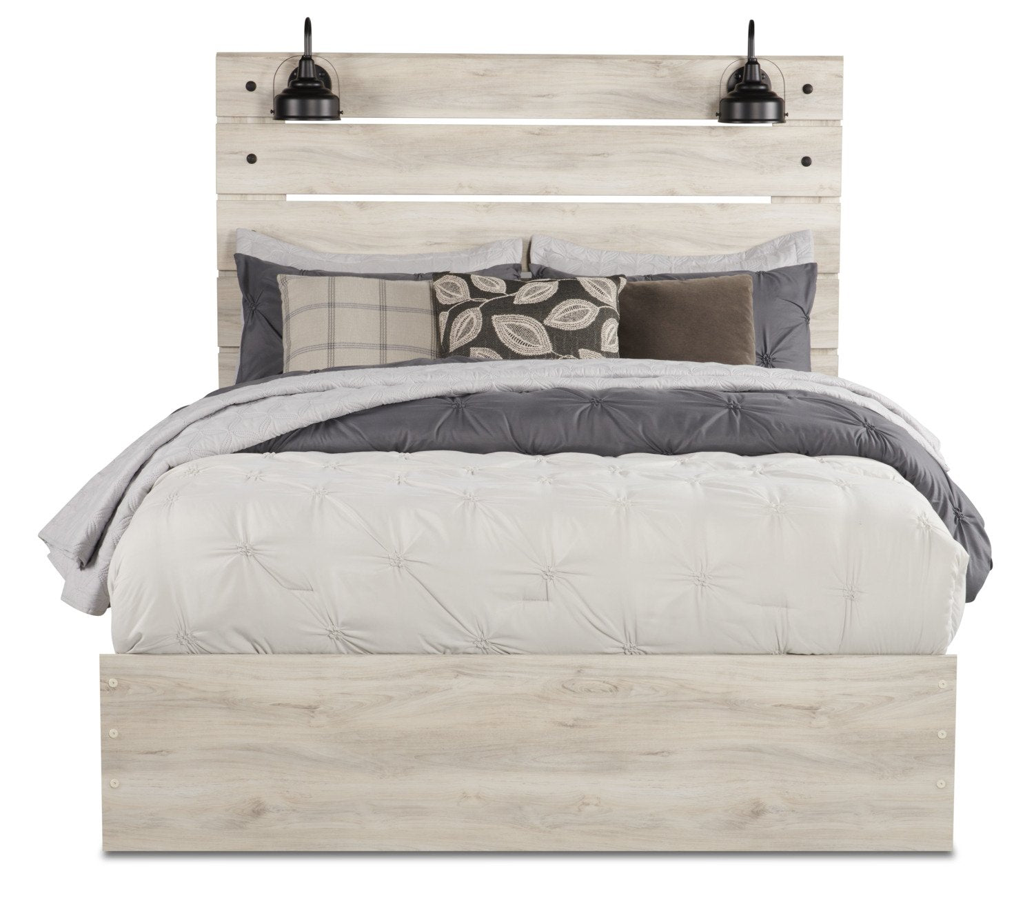 Lit à panneau Abby avec tête de lit, cadre de lit, éclairage à DEL et port USB, blanc - format grand lit