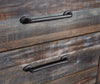 | Quincaillerie | De longues poignées foncé ornent le devant des tiroirs. |