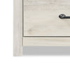 | Quincaillerie | De longues poignées foncé ornent le devant des tiroirs. |
