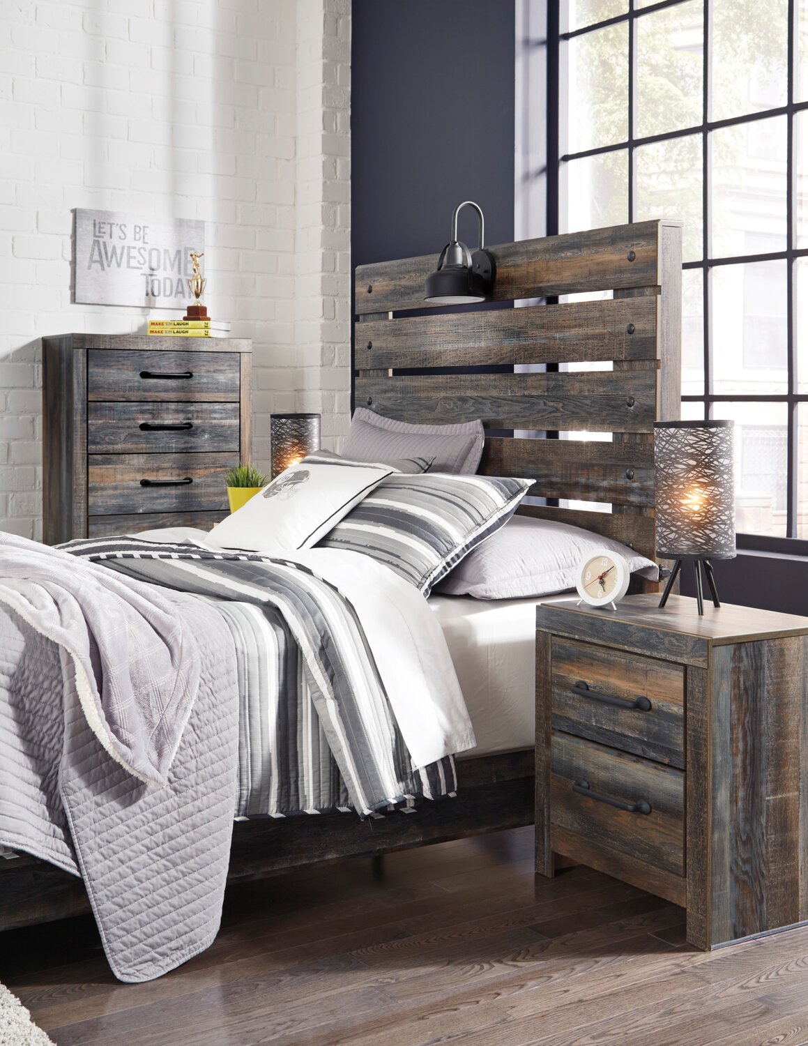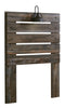 | Détails décoratifs | Des clous décoratifs en métal foncé et des espacements entre les lattes confèrent à cette tête de lit une allure rustique traditionnelle. |