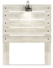| Détails décoratifs | Des clous décoratifs foncé et des espacements entre les lattes confèrent à la tête de lit une allure rustique. |
