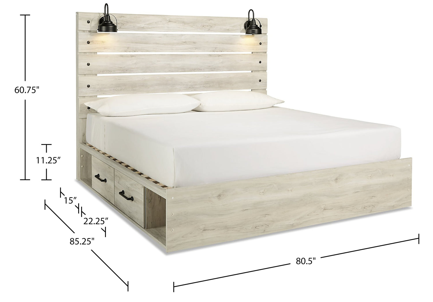 | Options de rangement | Quatre spacieux tiroirs et quatre compartiments ouverts intégrés sur les côtés du lit ajoutent un espace de rangement supplémentaire à votre chambre. |