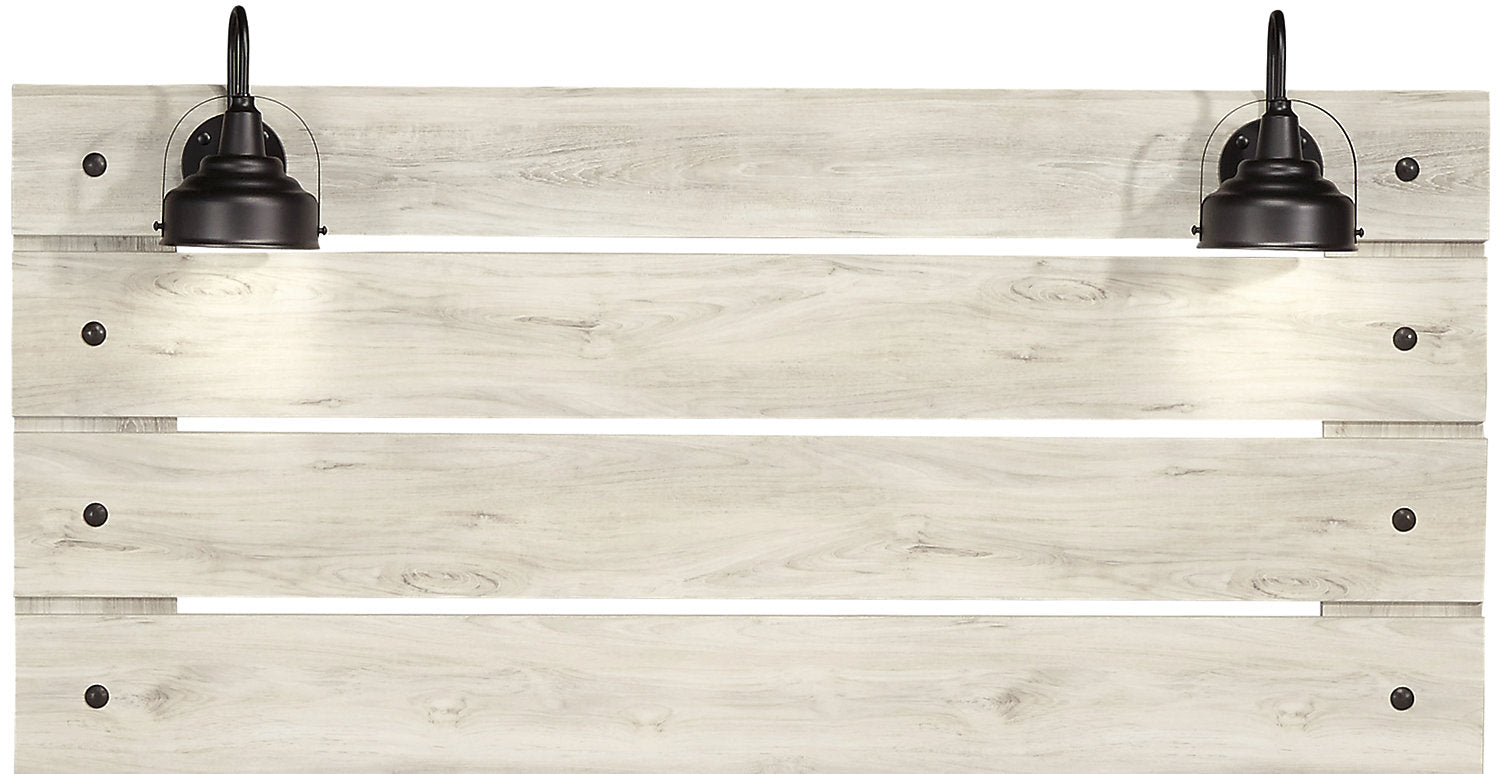| Détails décoratifs | Des clous décoratifs foncé et des espacements entre les lattes confèrent à la tête de lit une allure rustique. |