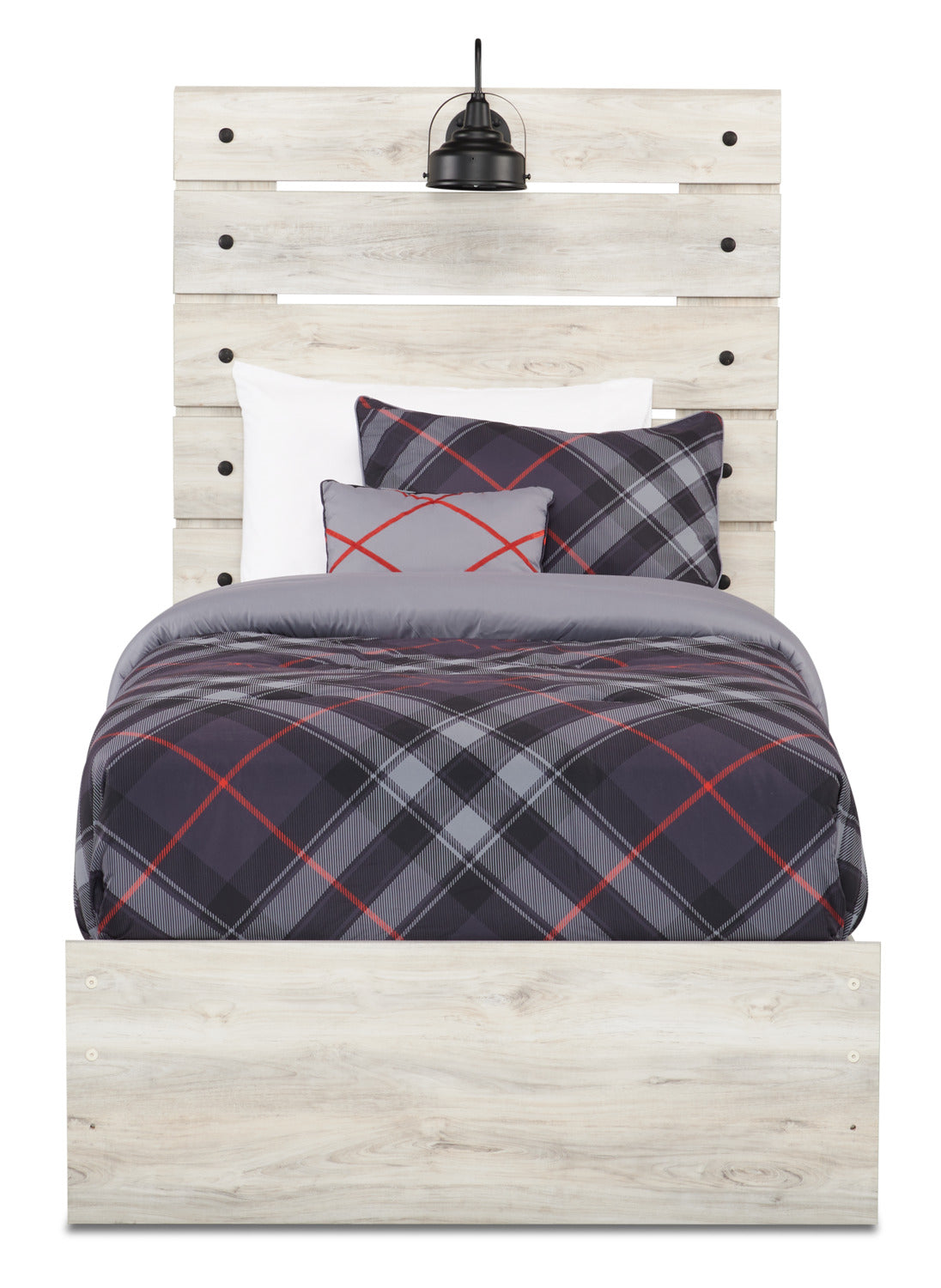 | Détails décoratifs | Des clous décoratifs foncé et des espacements entre les lattes confèrent à la tête de lit une allure rustique. |