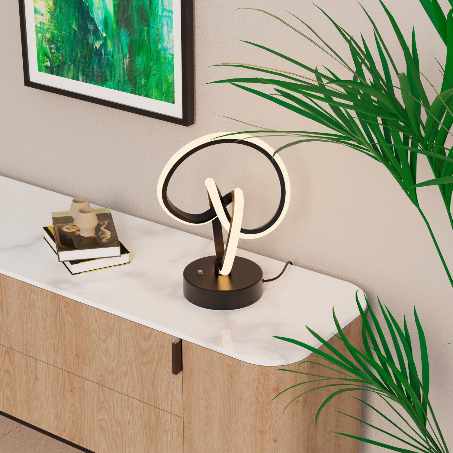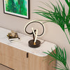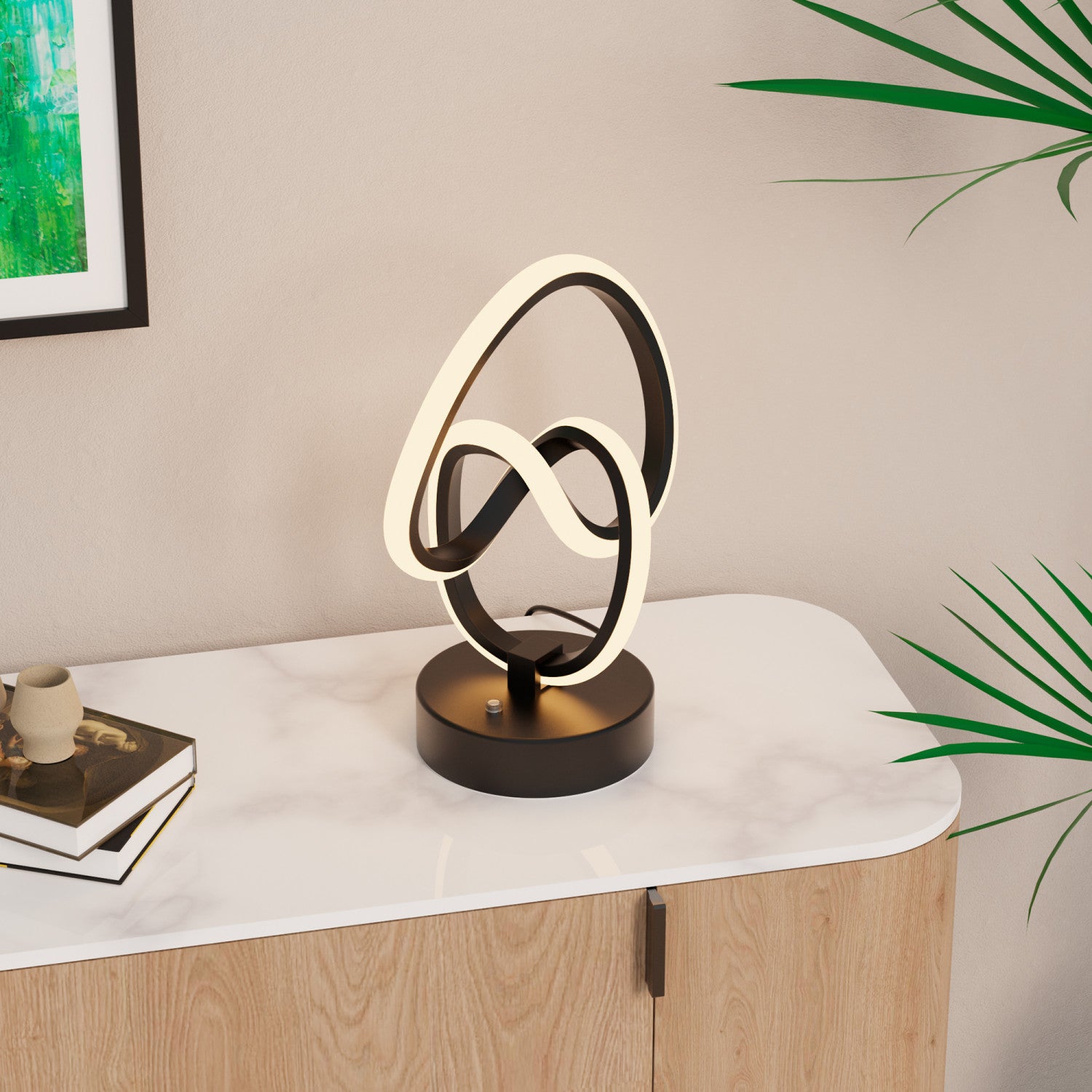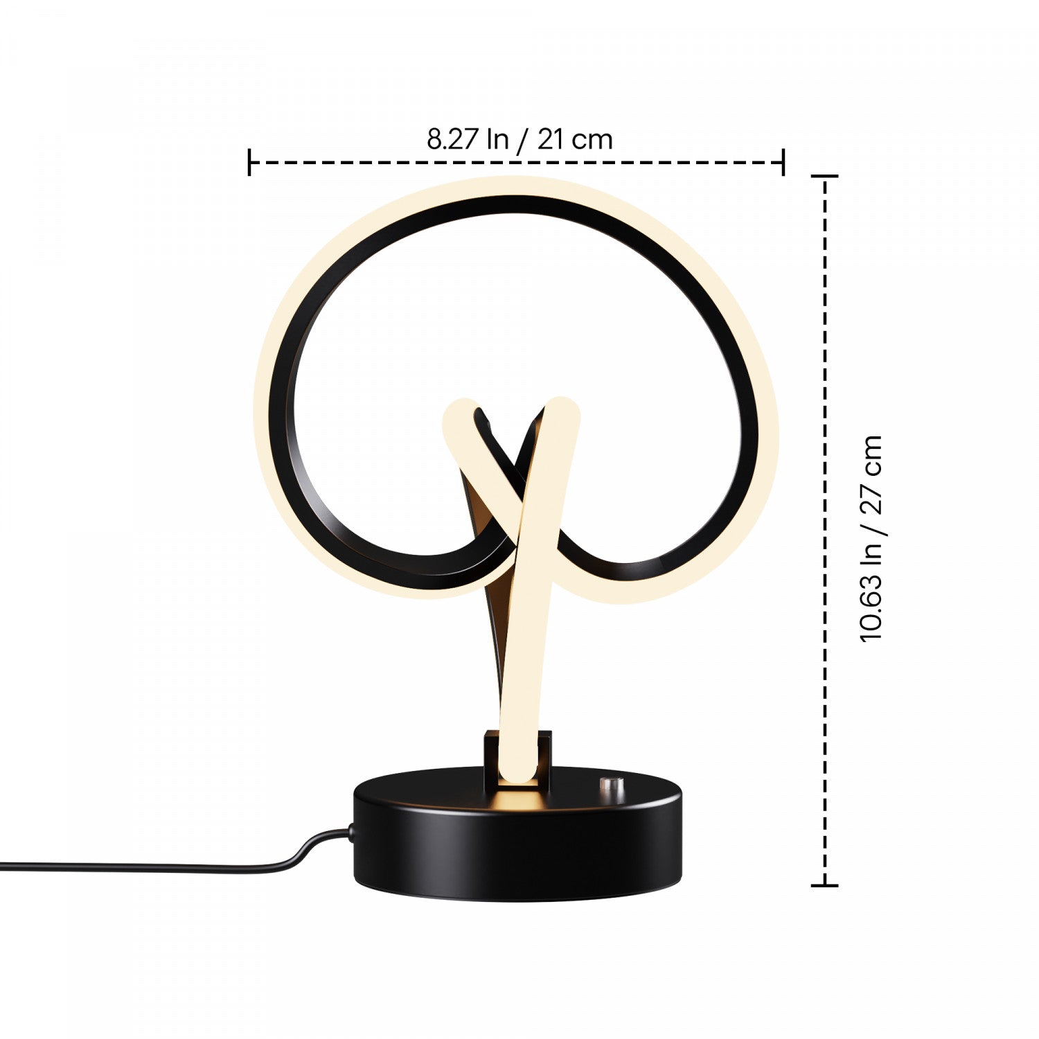 Cette lampe de table de 11 po possède une conception de boucles entrelacée abstraites qui crée une danse visuelle captivante. Émettant une lumière chaleureuse et apaisante de 3 000 K, cette lampe ajoute de l’élégance et une touche artistique contemporaine à n’importe quelle table. Son fini noir mat et sa forme abstraite vont assurément attirer l’attention, fournissant non seulement de l’éclairage, mais également un point d’intérêt pour n’importe quel espace moderne.