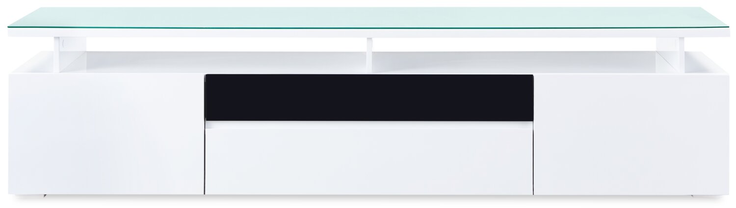 | Détails décoratifs | Pour un attrait visuel, le tiroir supérieur est blanc pour faire contraste avec le reste du meuble pour téléviseur noir. |