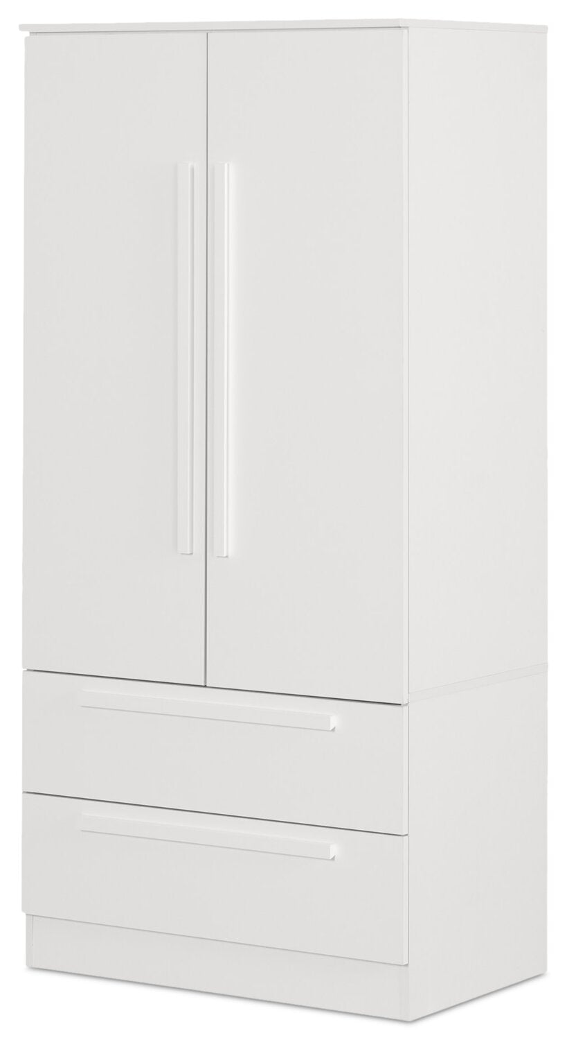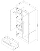 | Options de rangement | Deux tiroirs, trois tablettes (deux réglables) et une tringle pour accrocher des vêtements. |