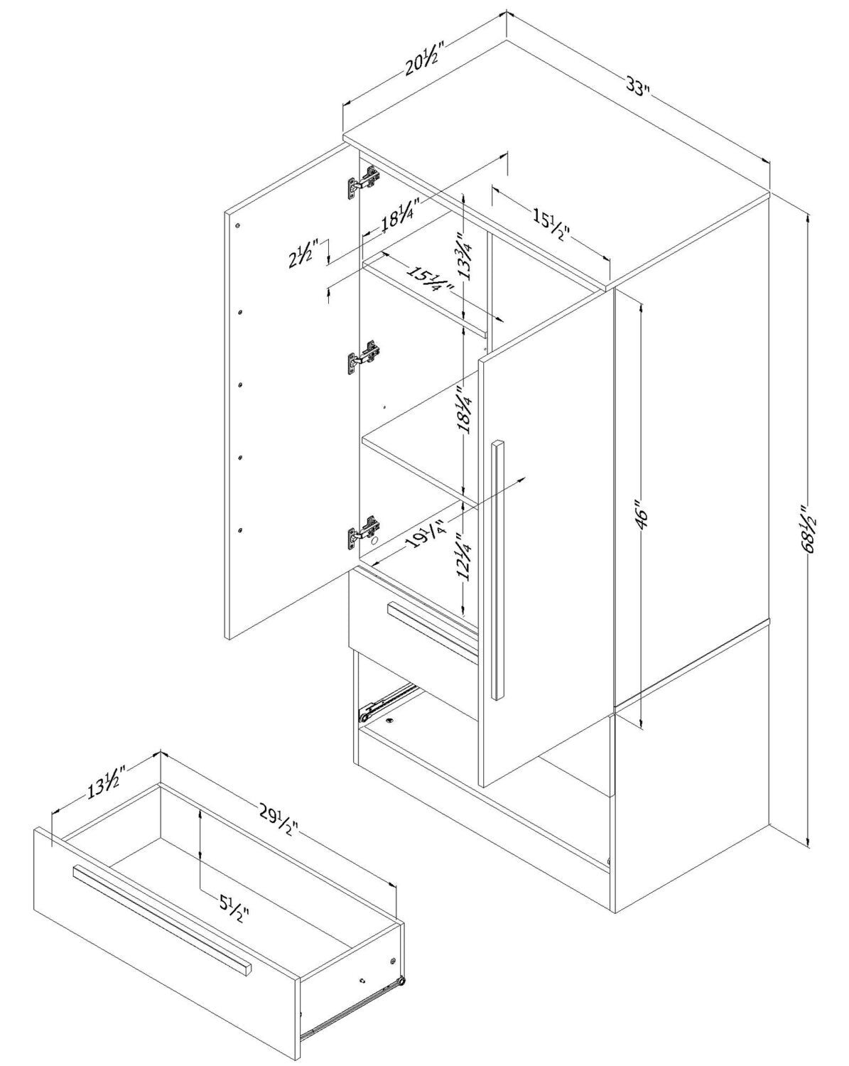 Largeur : 33 po (83,8 cm) Hauteur : 68,5 po (174,0 cm) Profondeur : 20,5 po (52,1 cm)