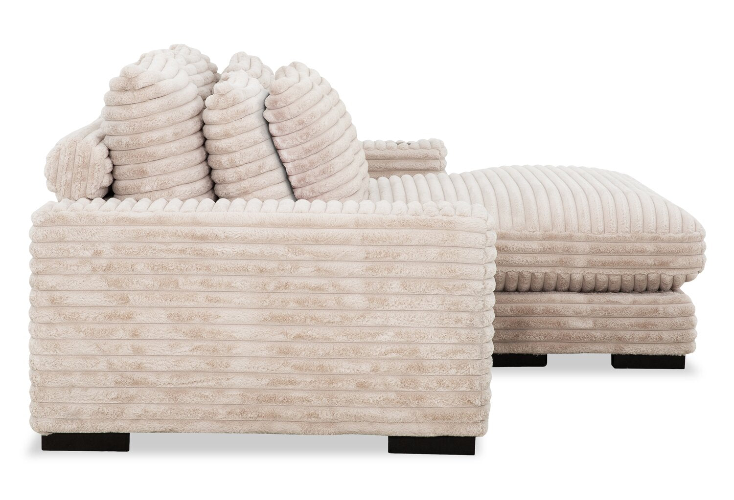 | Détails décoratifs | Les pattes en bois foncé complètent la teinte beige clair et le tissu doux légèrement rainuré confère une allure et une douceur somptueuses. |