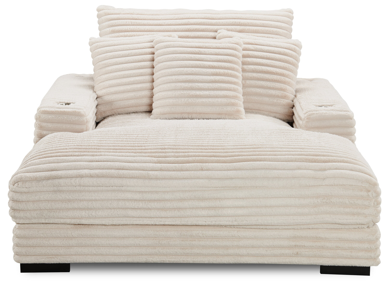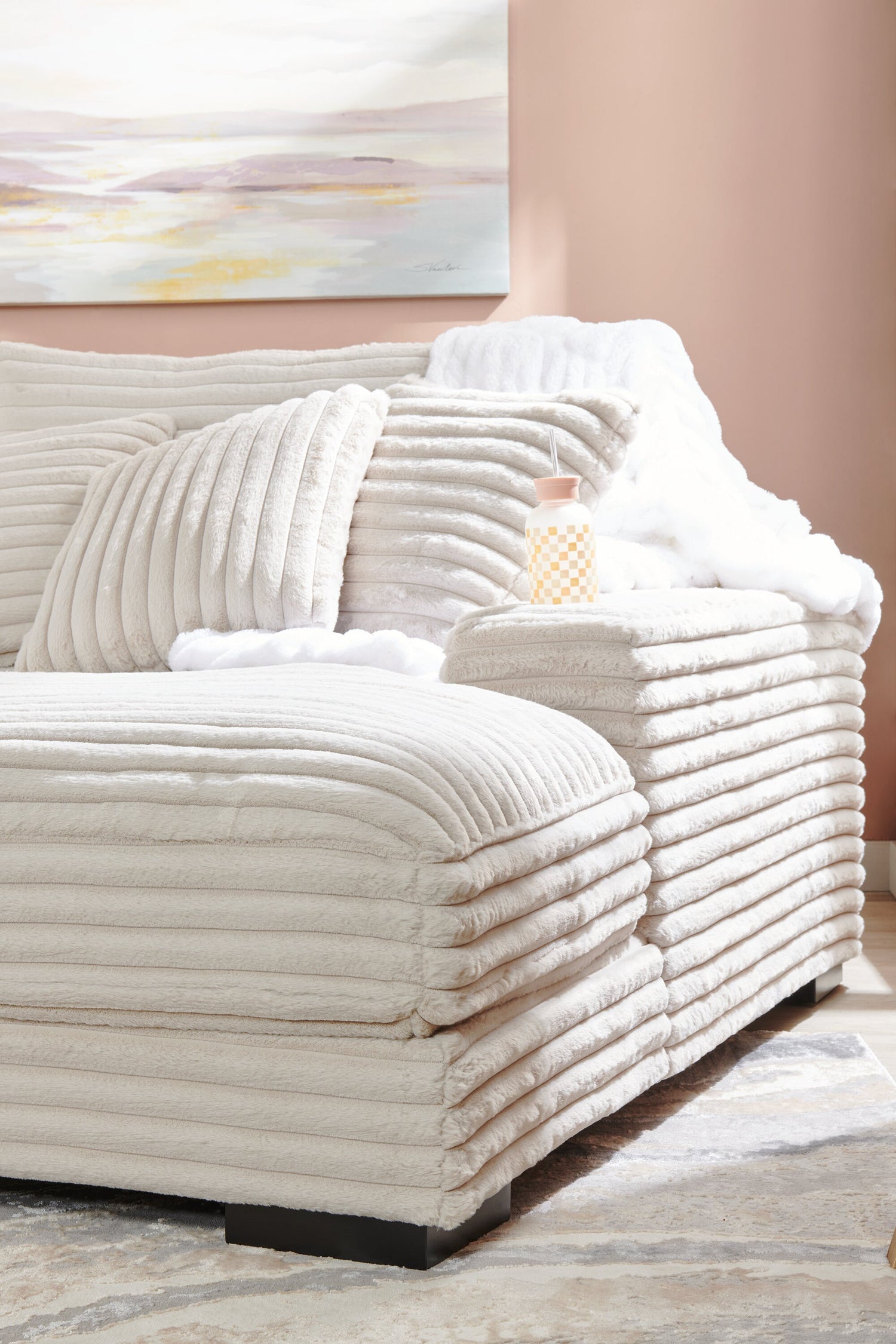 | Détails décoratifs | Les pattes en bois foncé complètent la teinte beige clair et le tissu doux légèrement rainuré confère une allure et une douceur somptueuses. |