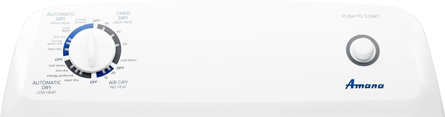 - Sélections des cycles de séchage : séchage à air non chauffé de 10 minutes, séchage à air non chauffé de 20 minutes, séchage à air non chauffé, séchage AutoDry à température élevée, séchage AutoDry à basse température, séchage automatique, séchage écoénergétique, moins sec, plus sec, séchage minuté 20, séchage minuté 40, séchage minuté 60.