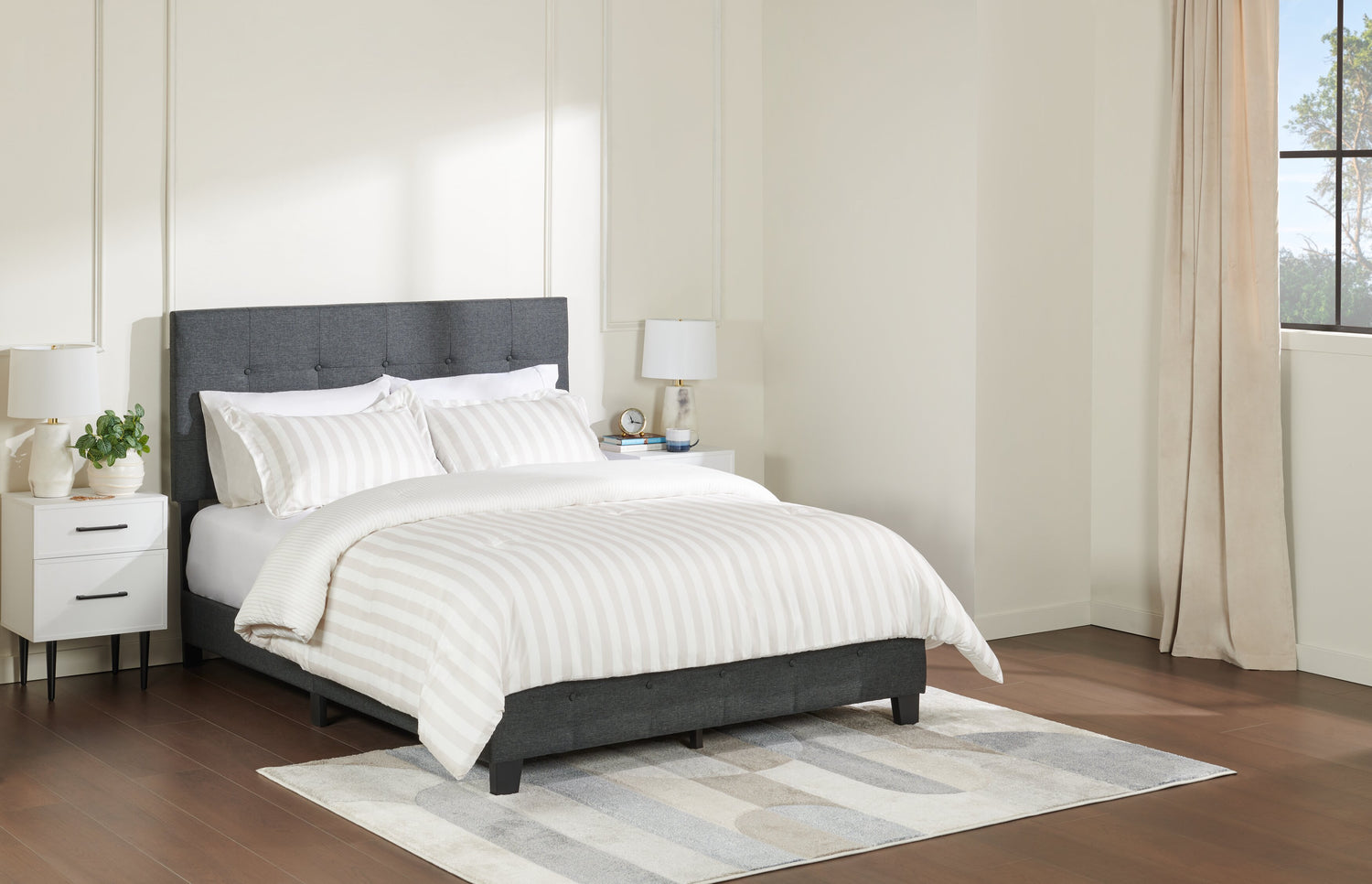 | Rembourrage | Nappe Ouatée En Fibre Le fait d'envelopper le rembourrage en mousse avec une nappe ouatée en fibre aide le coussin à demeurer en place tout en ajoutant une apparence lisse et moelleuse à votre meuble. |