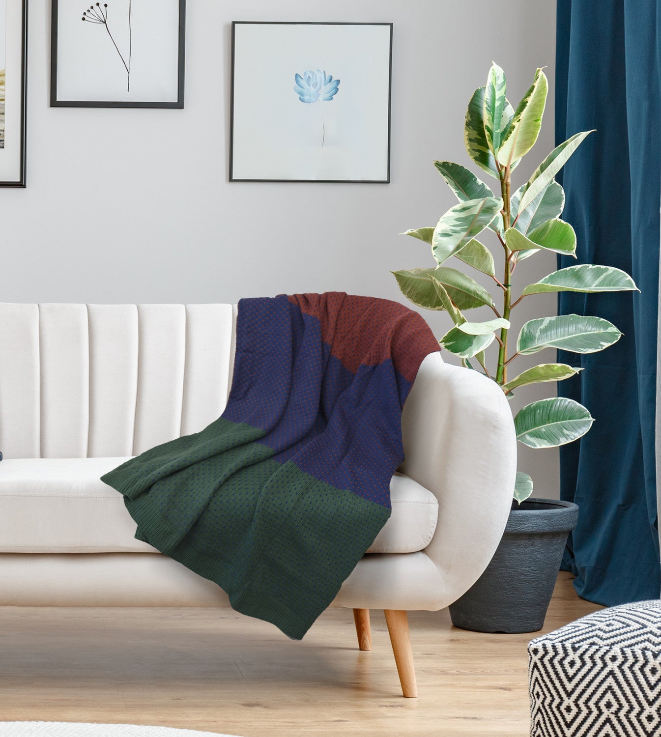 Jeté Anadia 50 po x 60 po bleu et bourgogne