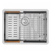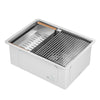 Fabriqué à la main à partir d’acier inoxydable de calibre 18, cet évier encastrable est muni d’un rebord unique spécialement conçu pour faire glisser les accessoires personnalisés à travers de l’évier et vous permettre de passer aisément de la préparation des repas au nettoyage. La cuve de 9 po de profondeur avec drain à l'arrière maximise l'espace précieux de votre cuisine. De plus, sa grille personnalisée préservera l'allure impeccable de l'évier. Le plan de travail allie avec brio qualité et conception supérieures.