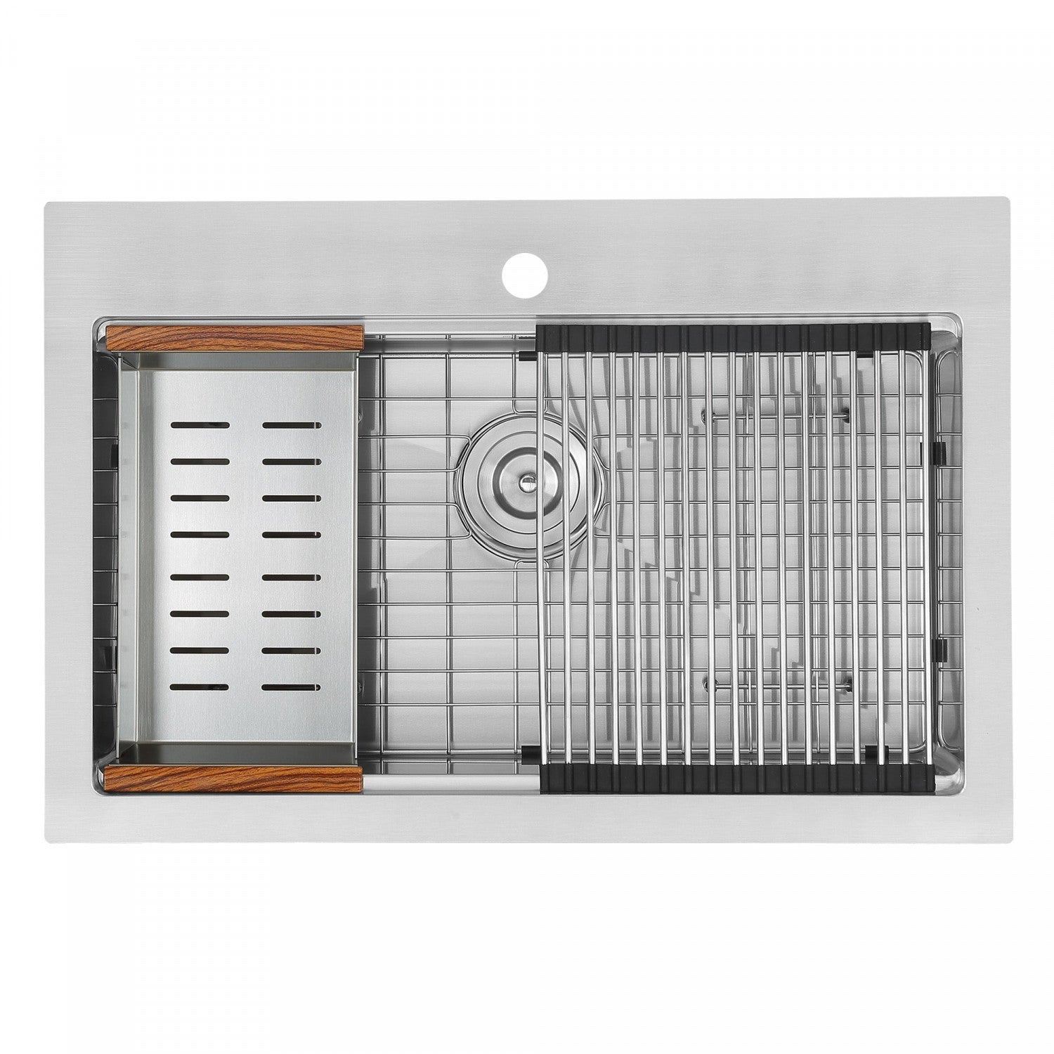 Fabriqué à la main en acier inoxydable de calibre 18, cet évier à installation en surface est muni d’un rebord unique qui permet de faire glisser les accessoires sur mesure à travers de l'évier afin que vous puissiez passer aisément de la préparation des repas au nettoyage. La cuve de 9 po de profondeur avec drain à l'arrière maximise l'espace précieux de votre cuisine. De plus, sa grille personnalisée préservera l'allure impeccable de l'évier. Le plan de travail pratique allie avec brio qualité et conception supérieures.