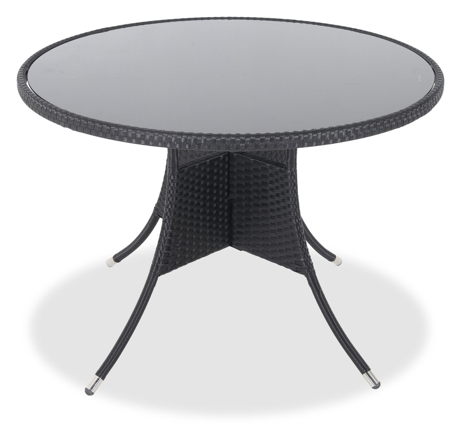 Table Arizona pour la terrasse à l’extérieur - osier en résine tressé à la main, dessus de table rond en verre trempé, résistante aux rayons UV et aux intempéries - noire