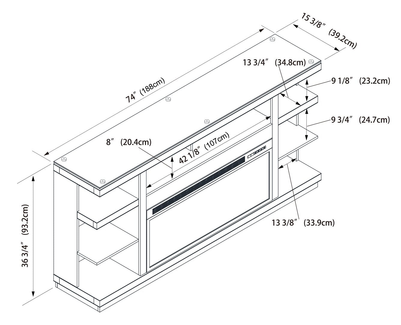 Largeur : 74 po (188,0 cm) Hauteur : 36,7 po (93,2 cm) Profondeur : 15,4 po (39,1 cm)
