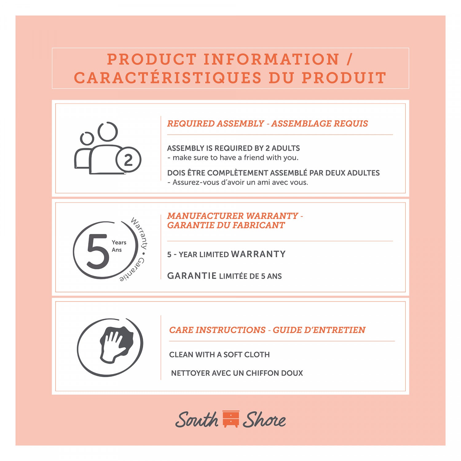 | Détails sécurité | Cet article répond aux normes de sécurité nord-américaines ou les excède, et son emballage est testé et certifié pour la réduction des risques de dommage pendant l’expédition. |
