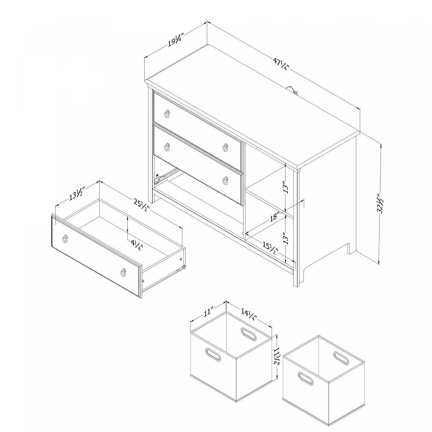 Balka Commode 3 Tiroirs Avec Paniers - Blanc Solide