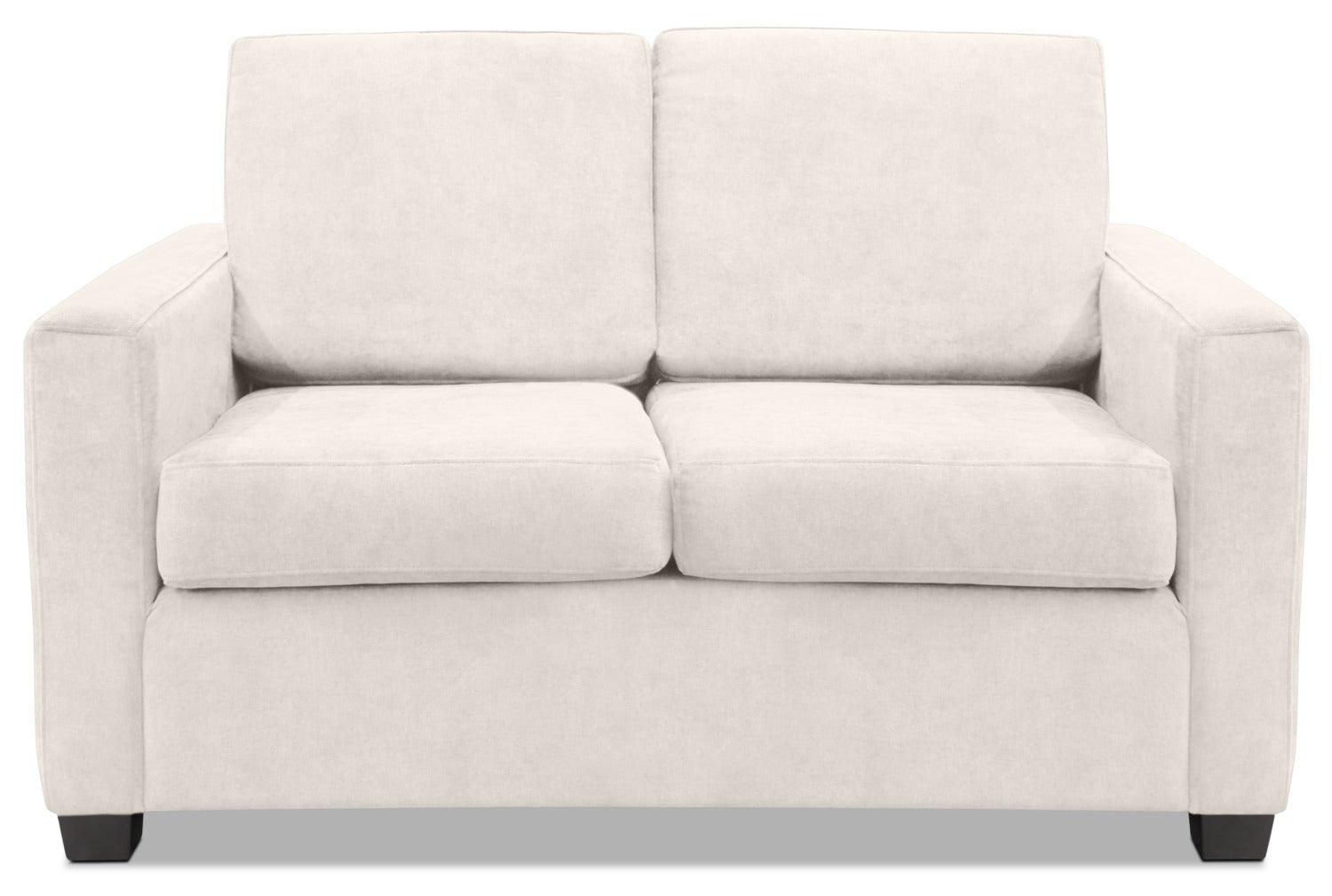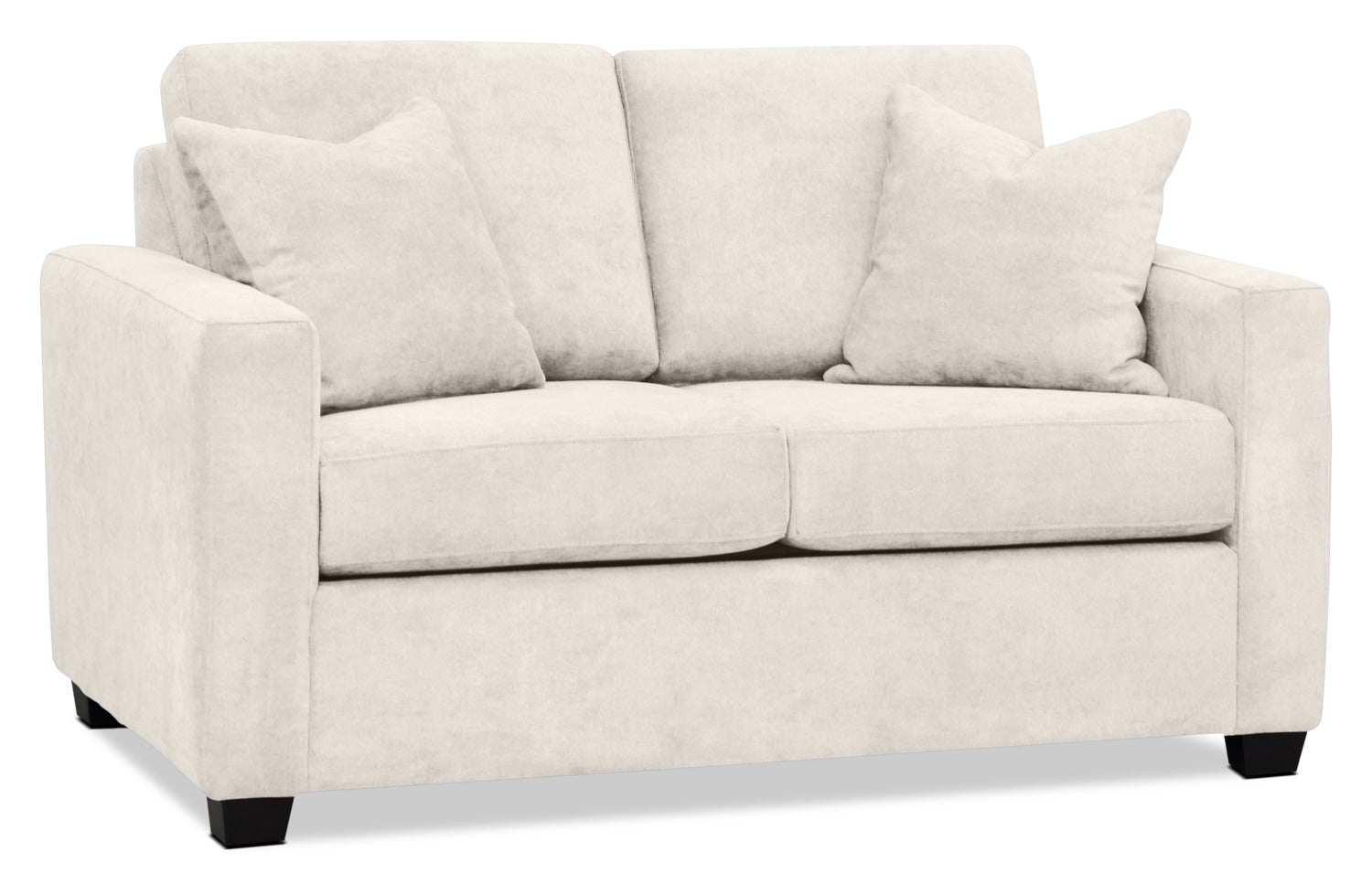 - Les accoudoirs rectilignes larges et les détails de passepoil permettent de mettre en valeur la conception contemporaine de cette causeuse.
