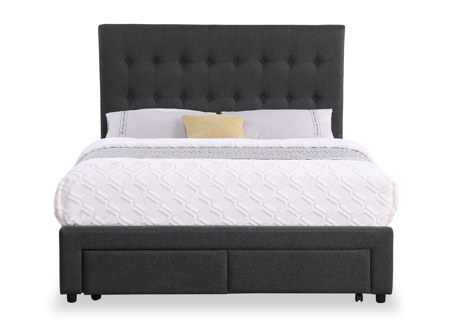| Options de rangement | Rangez des couvertures, des oreillers ou des essentiels de chambre à coucher additionnels dans les trois tiroirs de rangement qui se trouvent dans le pied de lit et sous le lit. |