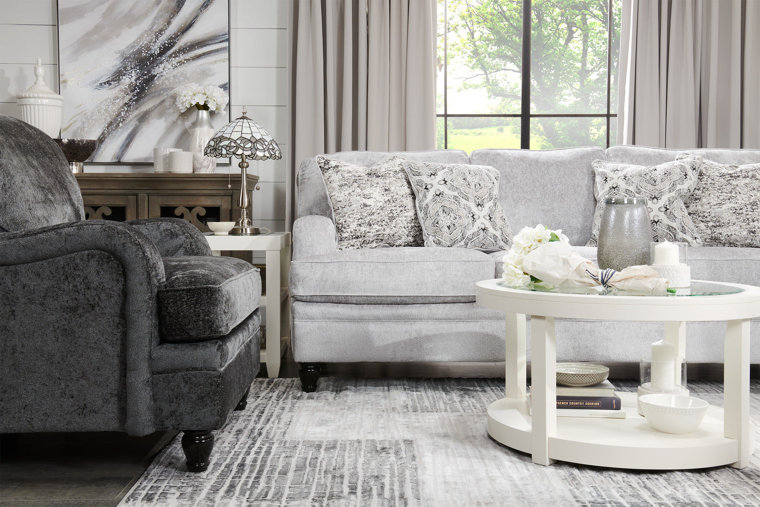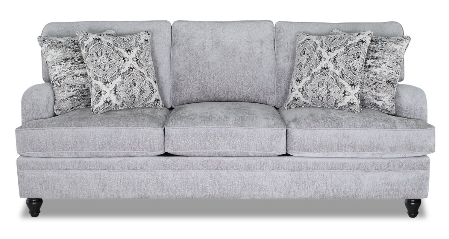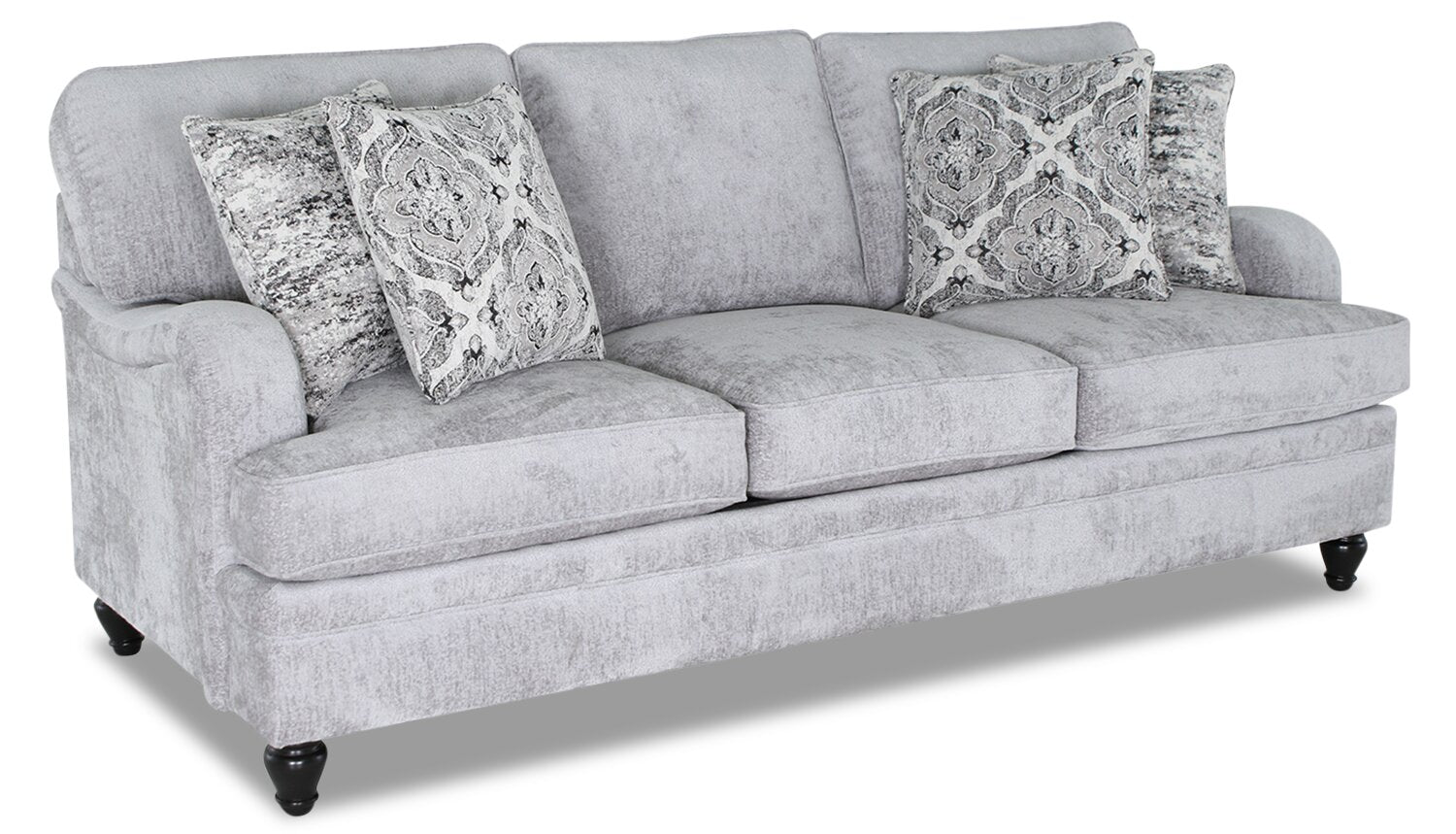 Sofa Bellmont de 89 po fabriqué au Canada en tissu de chenille avec coussins réversibles et pattes en bois - gris platine