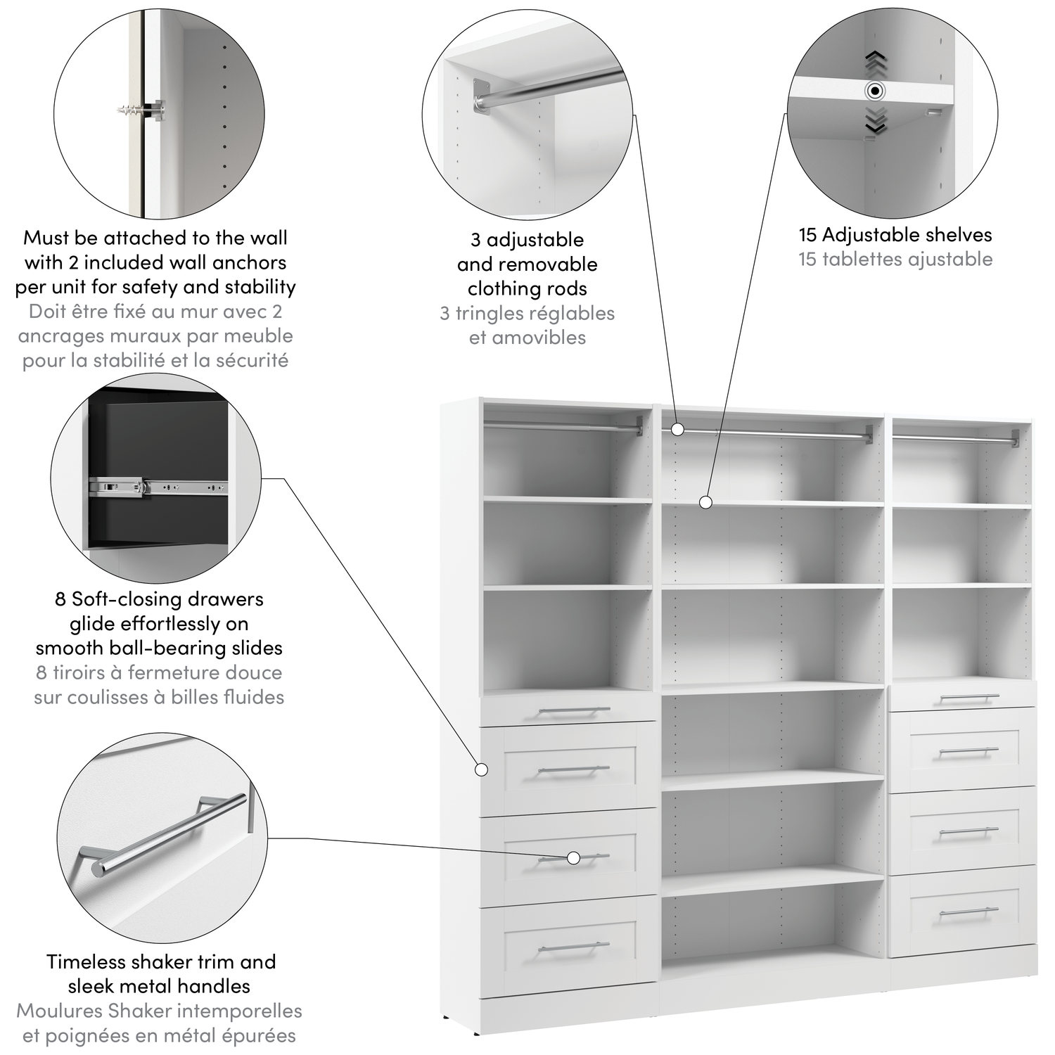 | Cet article inclut | Système de tour garde-robe de 25 po (L) x 16 po (P) avec tablettes et 4 tiroirs (2) et système de tour garde-robe de 36 po (L) x 16 po (P) avec tablettes. |
