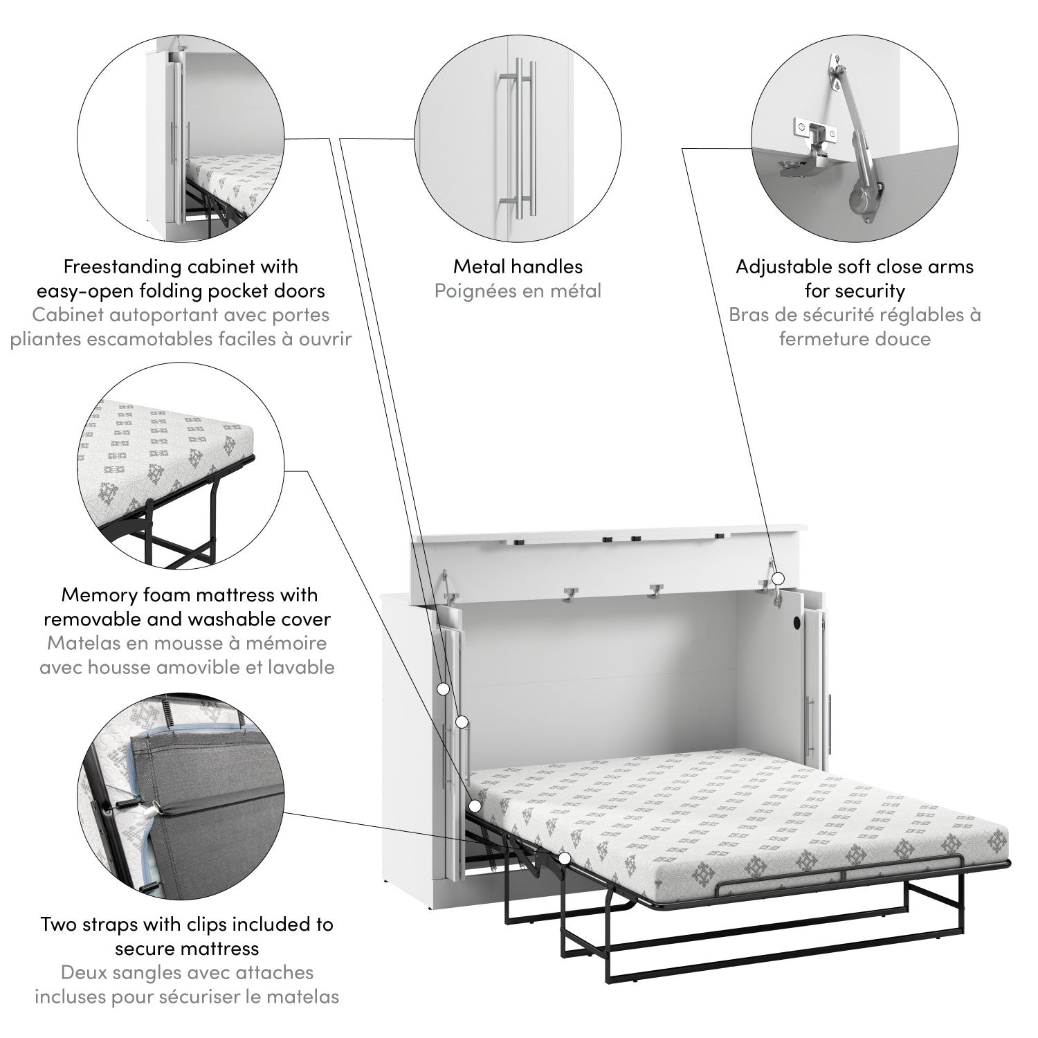 | Garantie du fabricant | L’armoire-lit est couverte par une garantie du fabricant de 10 ans. Le mécanisme rétractable possède une garantie de 2 ans, et le matelas a une garantie de 1 an. |