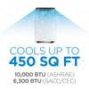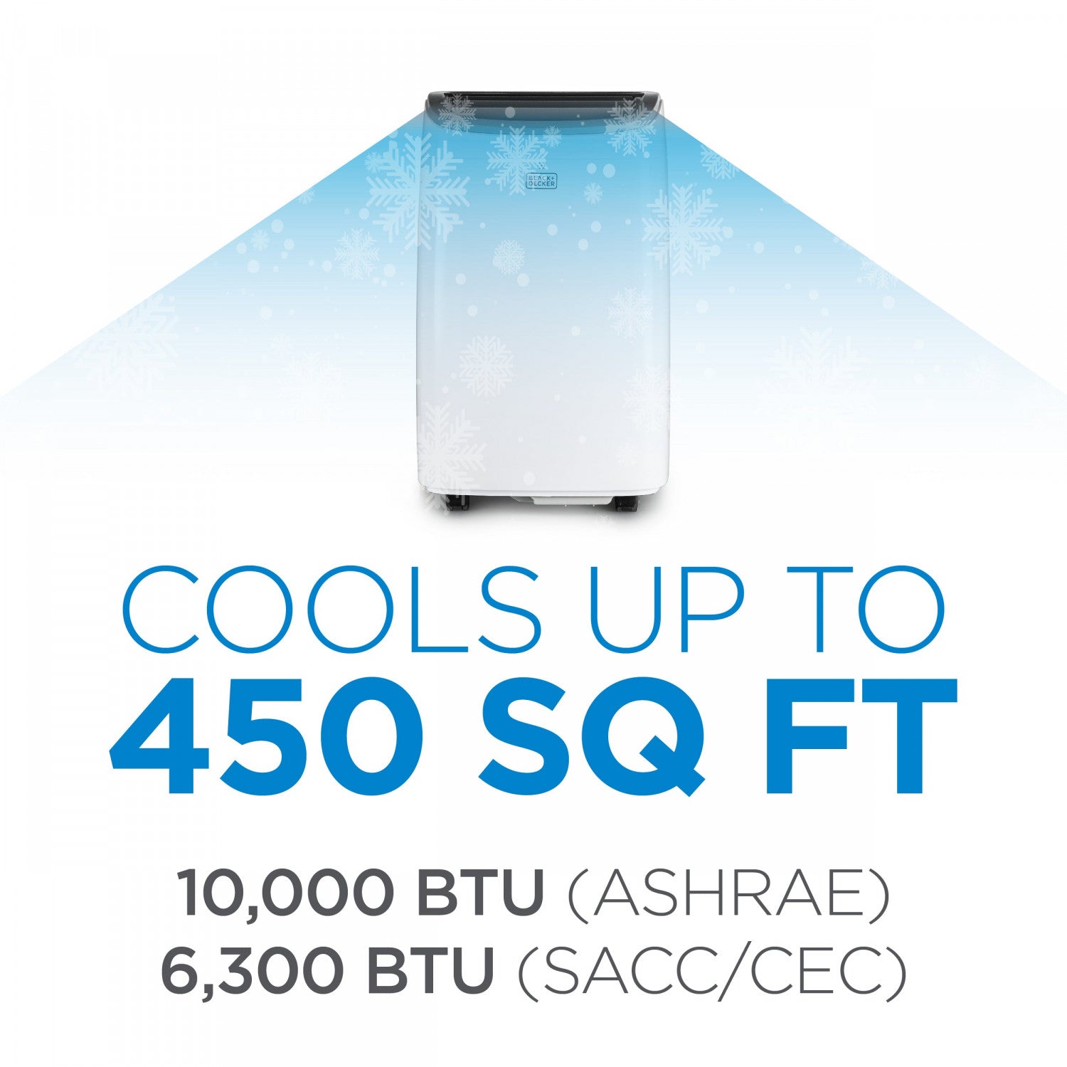 Ce climatiseur portatif Black+Decker de 10 000 BTU (6 300 BTU SACC) est votre meilleur ami pendant les mois d’été, fournissant de l’air frais, circulant librement et confortable 24 heures sur 24, sept jours sur sept, dans un espace mesurant jusqu’à 450 pi2. En matière de climatiseur pour pièces, notre climatiseur portatif (15,3 po [L] x 14 po [P] x 24,8 po [H]) offre trois fonctionnalités en un seul appareil : ventilation, déshumidification et refroidissement. Nos climatiseurs portatifs pour pièces possèdent un panneau de commande électronique facile à utiliser et une télécommande dotée de toutes les fonctions pour une utilisation facile. La fonction Suivez-moi transforme votre télécommande en thermostat mobile afin de permettre une commande précise de la température. C’est comme avoir votre thermostat dans vos mains. Réglez la température, la vitesse du ventilateur et toutes les autres fonctions tout en maintenant une commande parfaite de la température là où vous êtes et là où vous en avez le plus besoin. Grâce à une minuterie de 24 heures qui peut être activée ou désactivée, au filtre lavable coulissant et à l’évaporation automatique de l’eau, les avantages de ce climatiseur de pièce parlent d’eux-mêmes. Un panneau de commande supérieur avec affichage à DEL et une trousse pour fenêtre facile à installer sont inclus afin que vous puissiez placer votre climatiseur d’intérieur et votre climatiseur de pièce n’importe où. Grâce aux quatre roulettes en dessous et aux deux poignées latérales, faites facilement glisser votre climatiseur dans n’importe quelle pièce de la maison. Notre climatiseur portatif de 10 000 BTU inclut un rangement pour cordon d’alimentation et pour fiche ce qui offre une commodité optimale. Il utilise également du réfrigérant R32 qui ne contribue pas à la destruction de la couche d'ozone. C’est véritablement l’un des meilleurs climatiseurs de pièce! La grande sortie d’air de ventilation à l’avant avec évents réglables dans 2 directions assure une fonctionnalité supérieure et une satisfaction totale de rafraîchissement de la pièce.