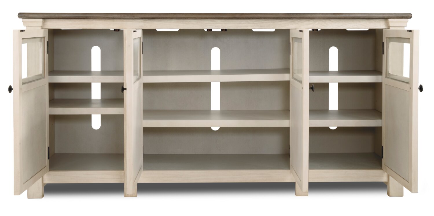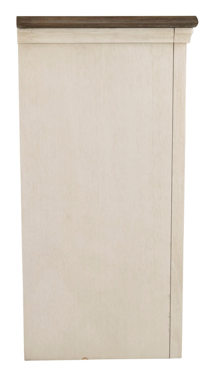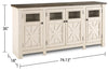 | Détails décoratifs | Le fini deux teintes jumelle un blanc antique texturé tendance avec un gris vieilli, tandis que les portes d’armoires ornées d’une forme en X avec des incrustations de verre ajoutent une touche d'attrait. |