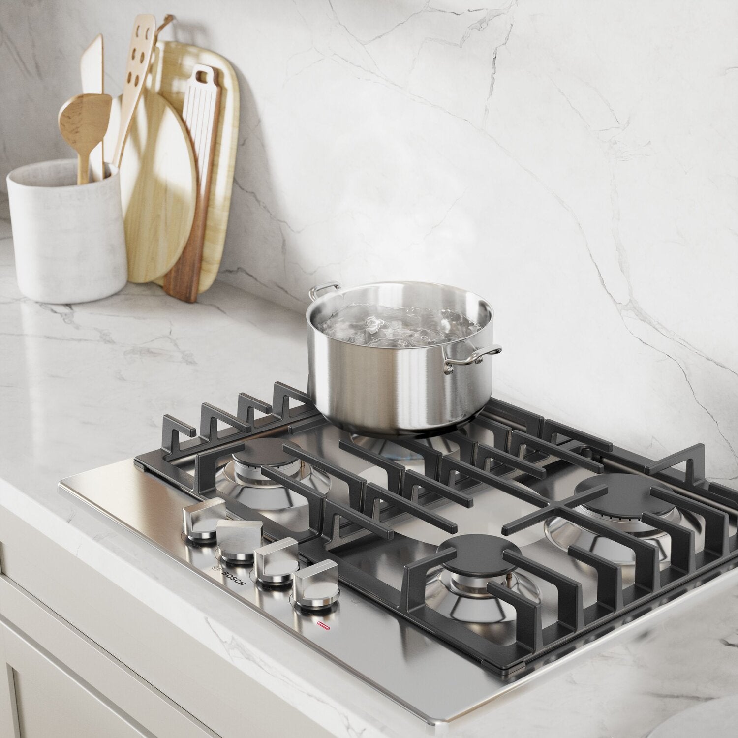 Nettoyage facile : Grilles robustes en fonte : Brûleurs haute efficacité : 4 brûleurs : Conception professionnelle et audacieuse : |