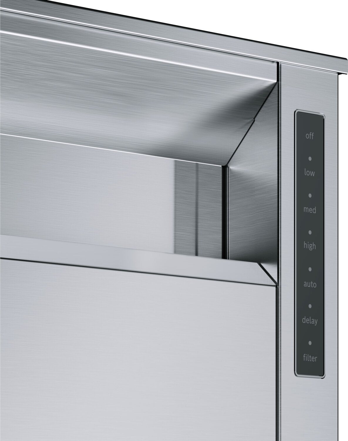 Multiples options de conduits : Se rétracte hors de la vue : Protège contre les éclaboussures : Ventilateur puissant de 600 pi3/min : Filtres à tamis en aluminium lavables au lave-vaisselle : Trois vitesses : |
