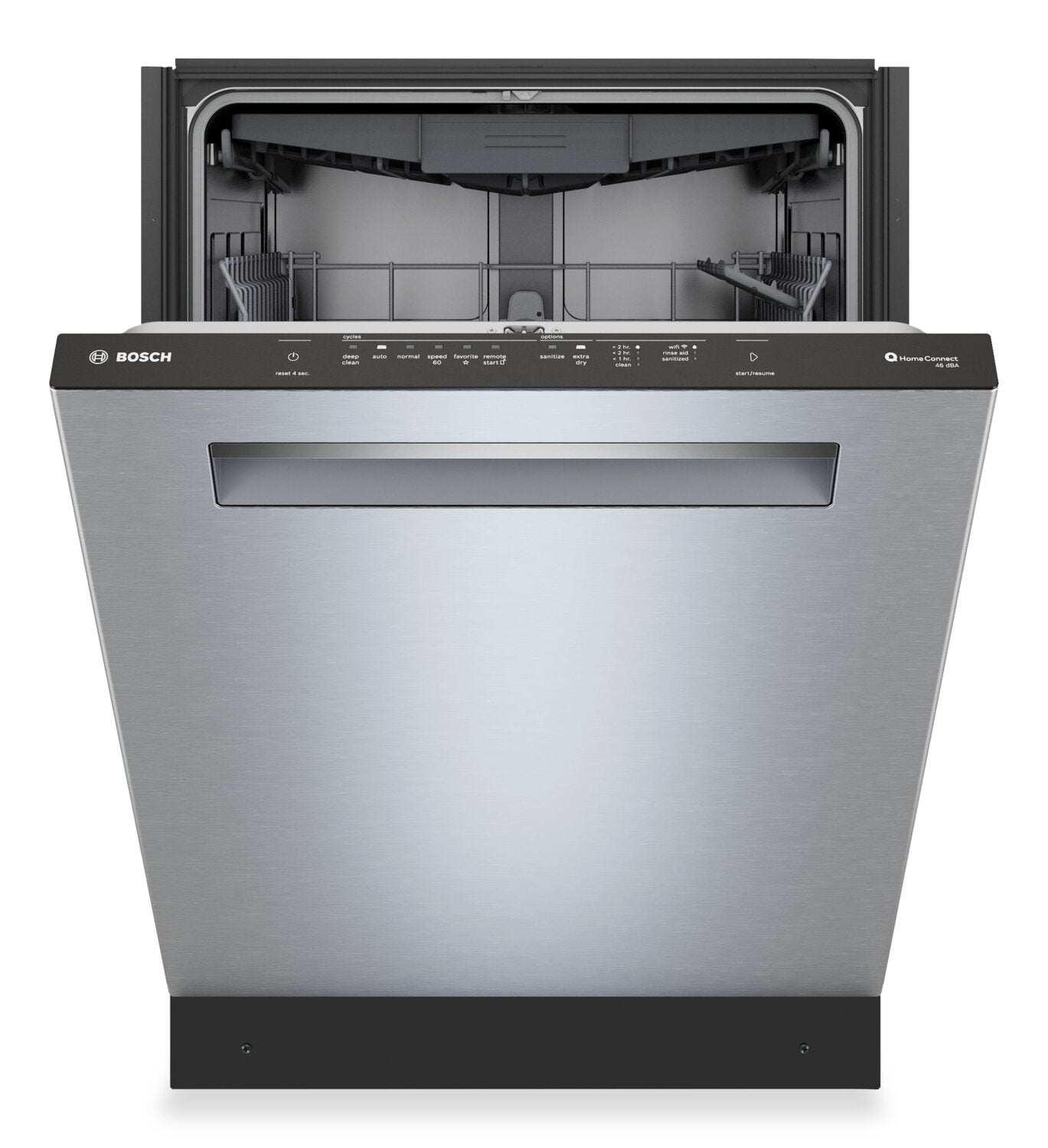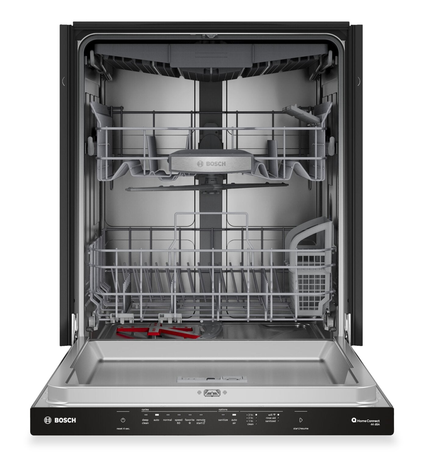 Nettoyage de zone : Option AutoAirMD : Fonctionnement silencieux à 46 dBA : Troisième panier standard : Application Home ConnectMD : Panier RackMaticMD : |