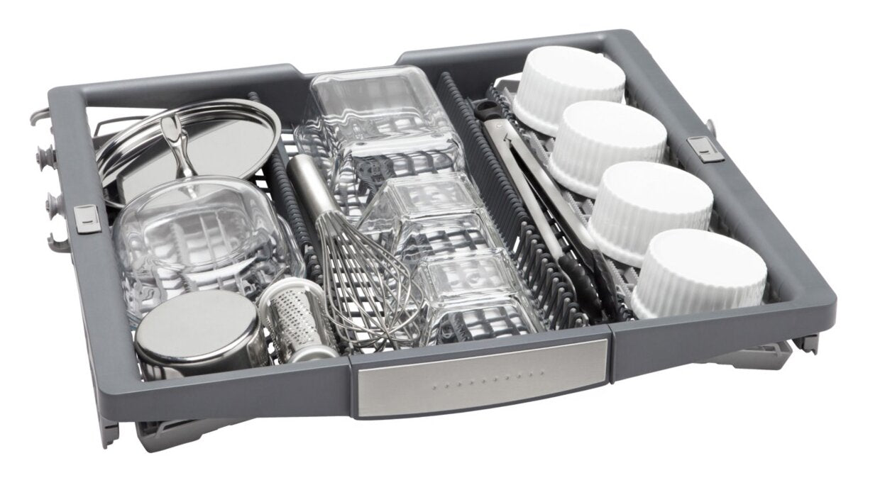 Technologie PrecisionWashMC : Bras gicleur PowerControl : Connectivité Wi-Fi avec technologie Home ConnectMC : Technologie CrystalDryMC : Troisième panier polyvalent : Panier réglable RackMaticMD : Distributeur de détergent : Système antifuite AquaStopMD en tout temps : |