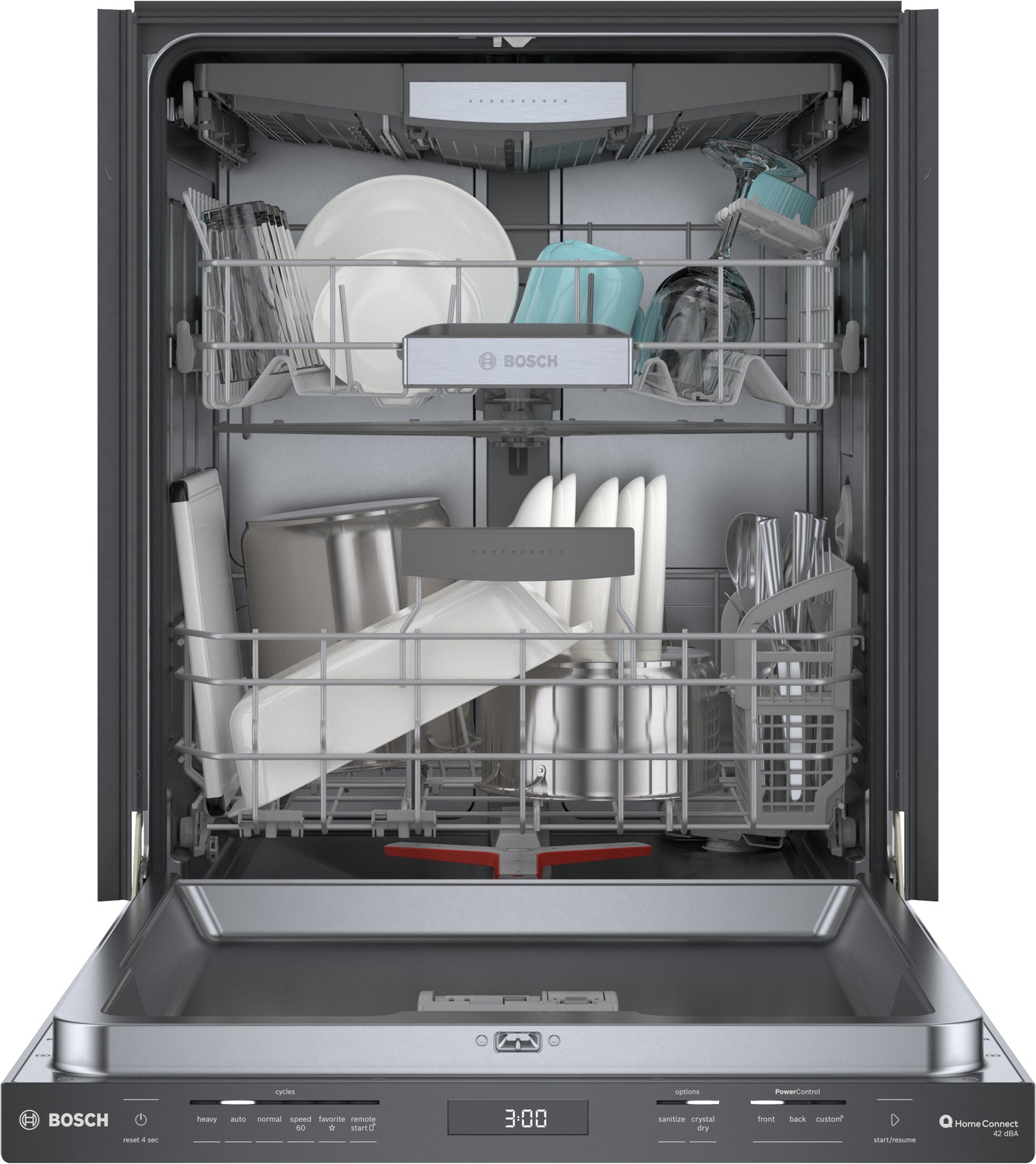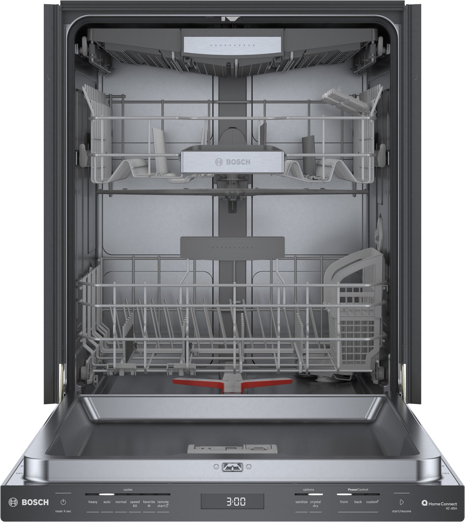 Technologie PrecisionWashMC : Bras gicleur PowerControl : Connectivité Wi-Fi avec technologie Home ConnectMC : Technologie CrystalDryMC : Troisième panier polyvalent : Panier réglable RackMaticMD : Distributeur de détergent : Système antifuite AquaStopMD en tout temps : |