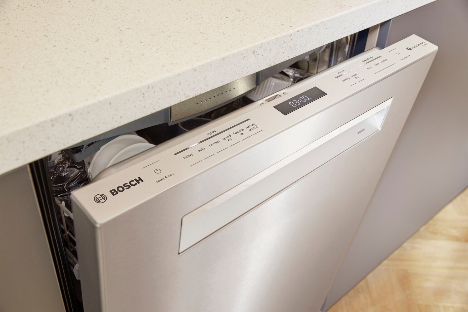 Technologie PrecisionWashMC : Bras gicleur PowerControl : Connectivité Wi-Fi avec technologie Home ConnectMC : Technologie CrystalDryMC : Troisième panier polyvalent : Panier réglable RackMaticMD : Distributeur de détergent : Système antifuite AquaStopMD en tout temps : |