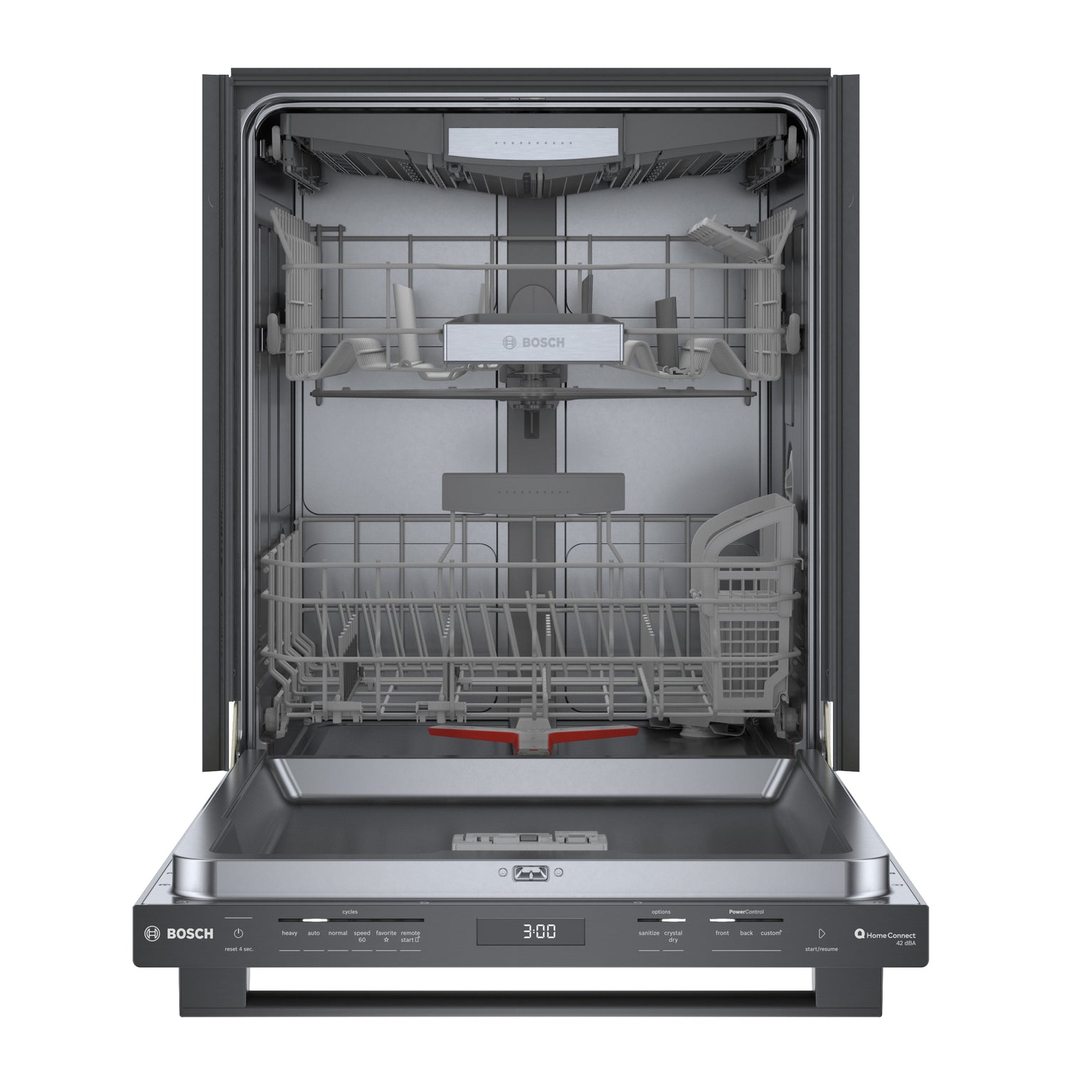 Technologie PrecisionWashMC : Bras gicleur PowerControl : Connectivité Wi-Fi avec technologie Home ConnectMC : Technologie CrystalDryMC : Troisième panier polyvalent : Panier réglable RackMaticMD : Distributeur de détergent : Système antifuite AquaStopMD en tout temps : |