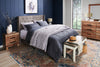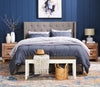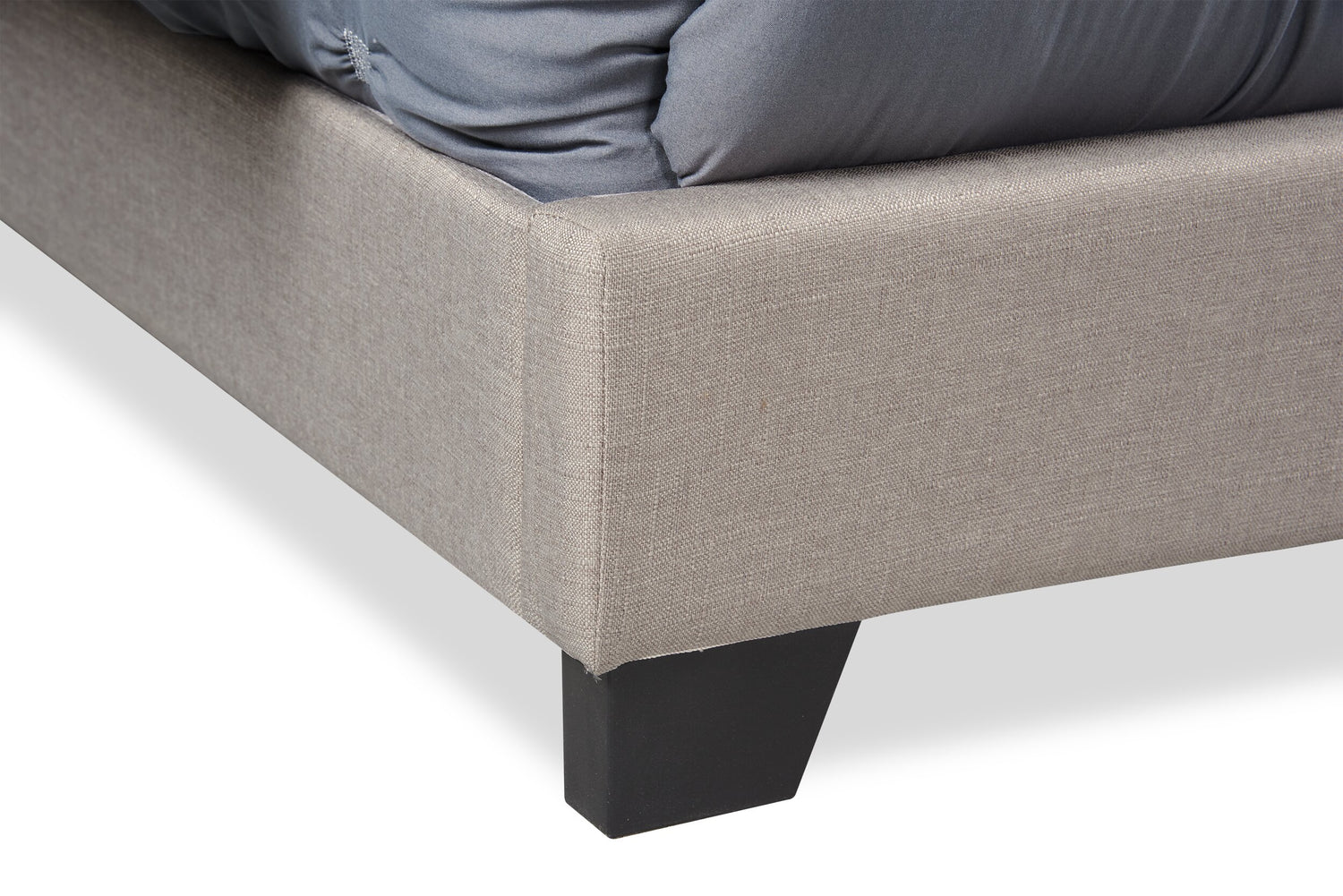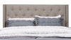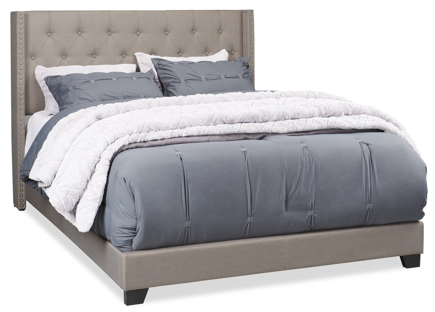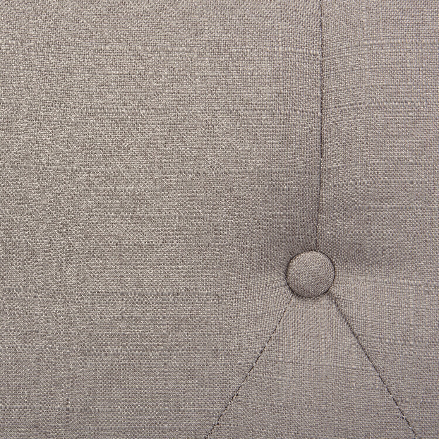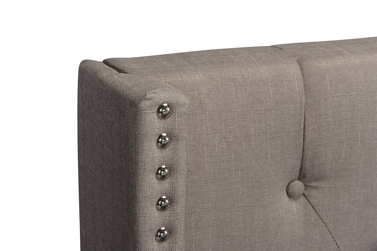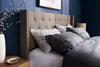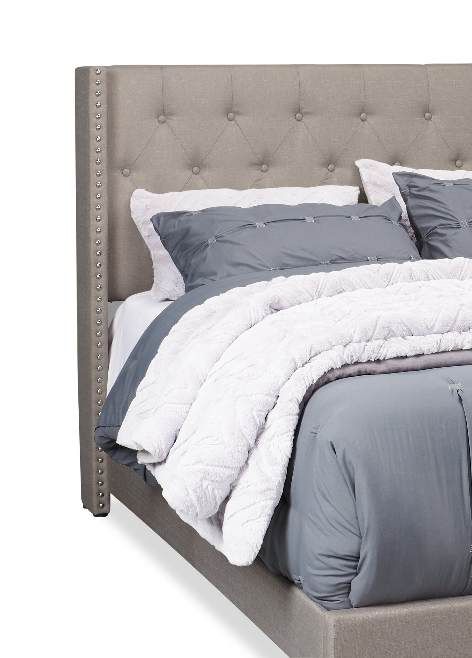 | Quincaillerie | Le fini chrome sur la tête de lit capitonnée ajoute des éléments éclatants à ce lit. |