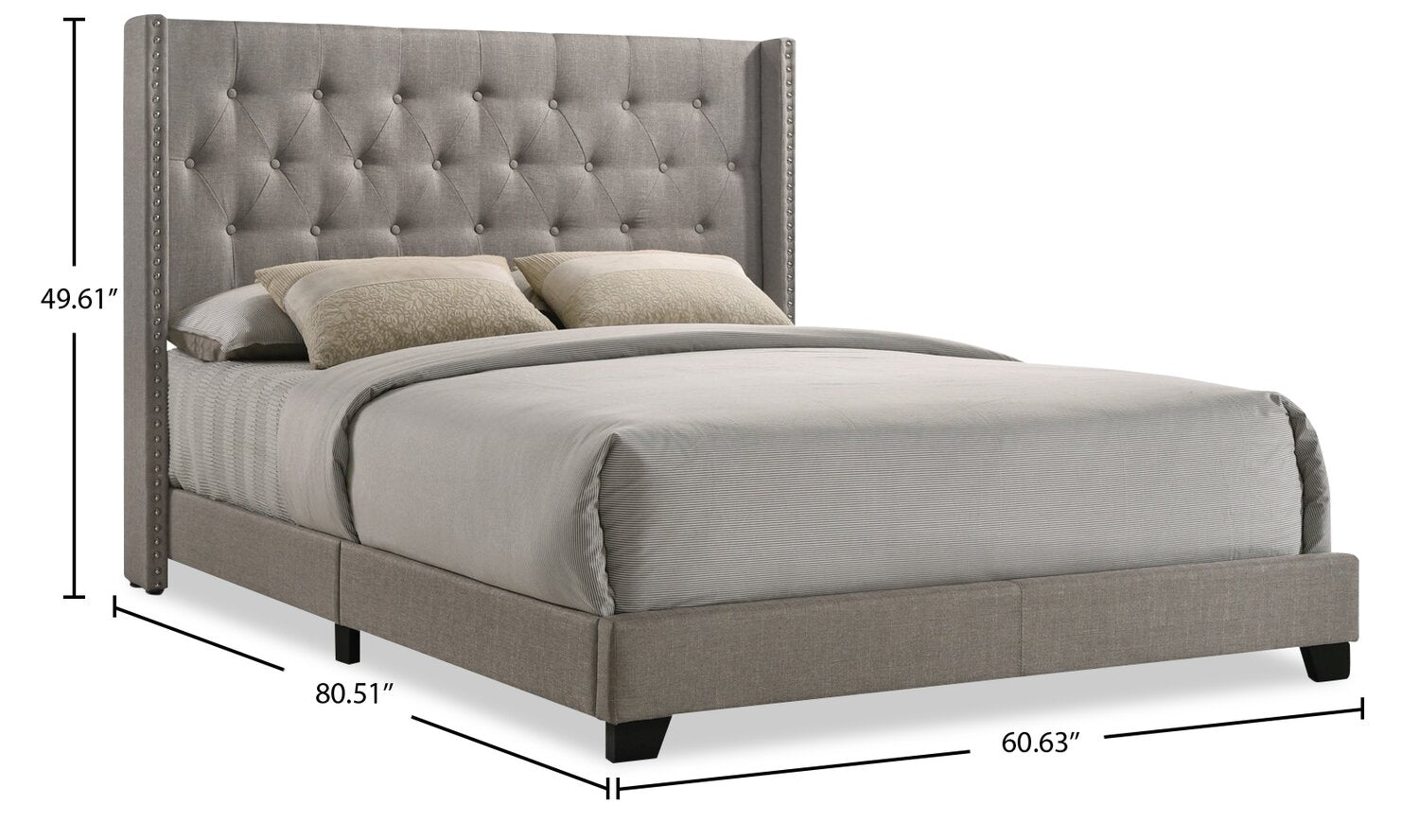 | Quincaillerie | Tête de lit pour lit double : 59,75 po (L) x 49,625 po (H) x 4 po (P). |
