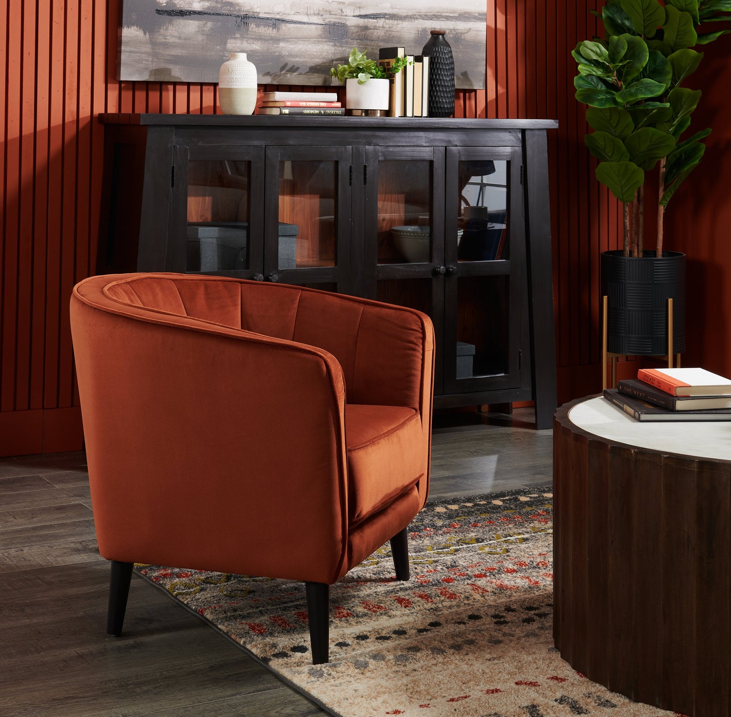 | Détails décoratifs | Les passepoils en tissu assortis et les coutures linéaires sur le dossier ajoutent une touche somptueuse à ce fauteuil. |