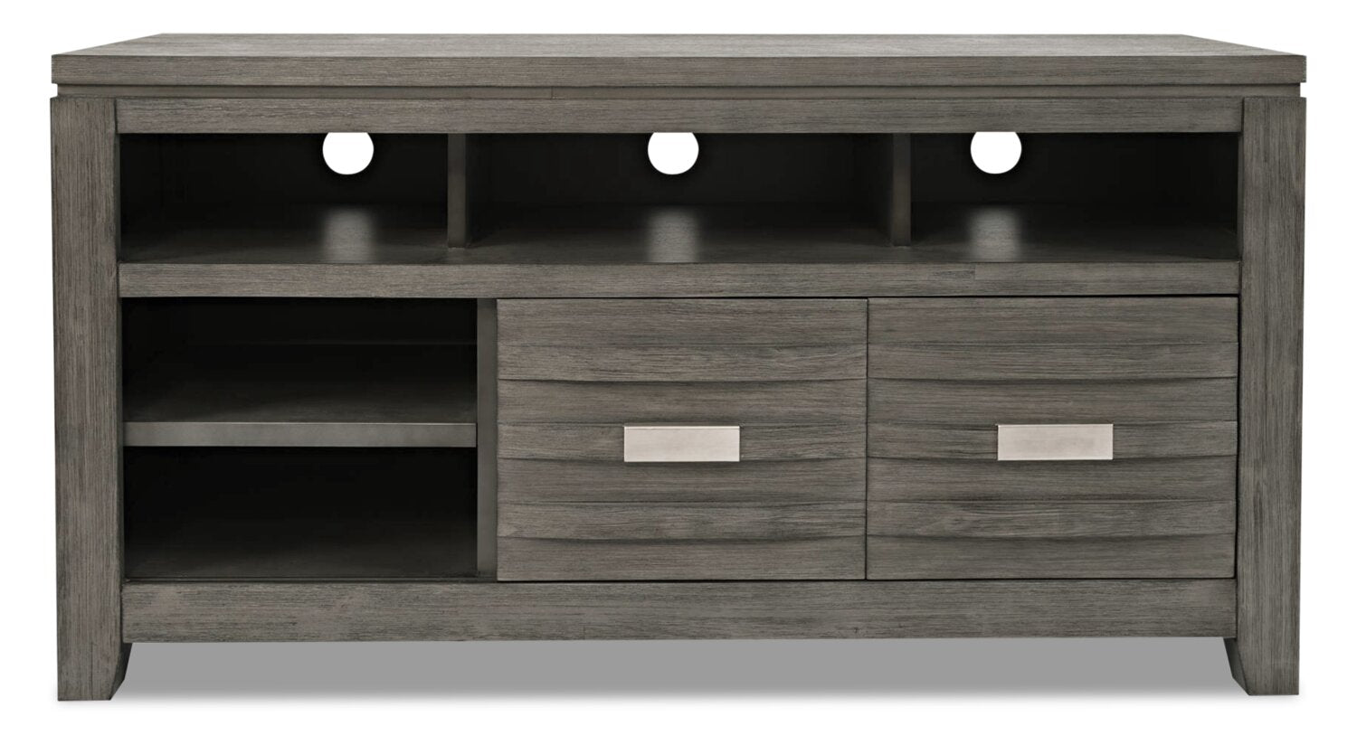 | Détails décoratifs | Des arêtes gravées sur le devant des tiroirs et sous le dessus de la table confèrent une apparence superposée qui rehausse la construction en bois. |