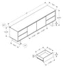 Largeur : 71 po (180,3 cm) Hauteur : 23,75 po (60,3 cm) Profondeur : 15,5 po (39,4 cm)