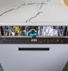 | Paniers | Panier supérieur réglable, tiges à bouts arrondis, panier à ustensiles polyvalent Flex de Café, glissières supérieures à extension complète, système de gestion de couvercles |