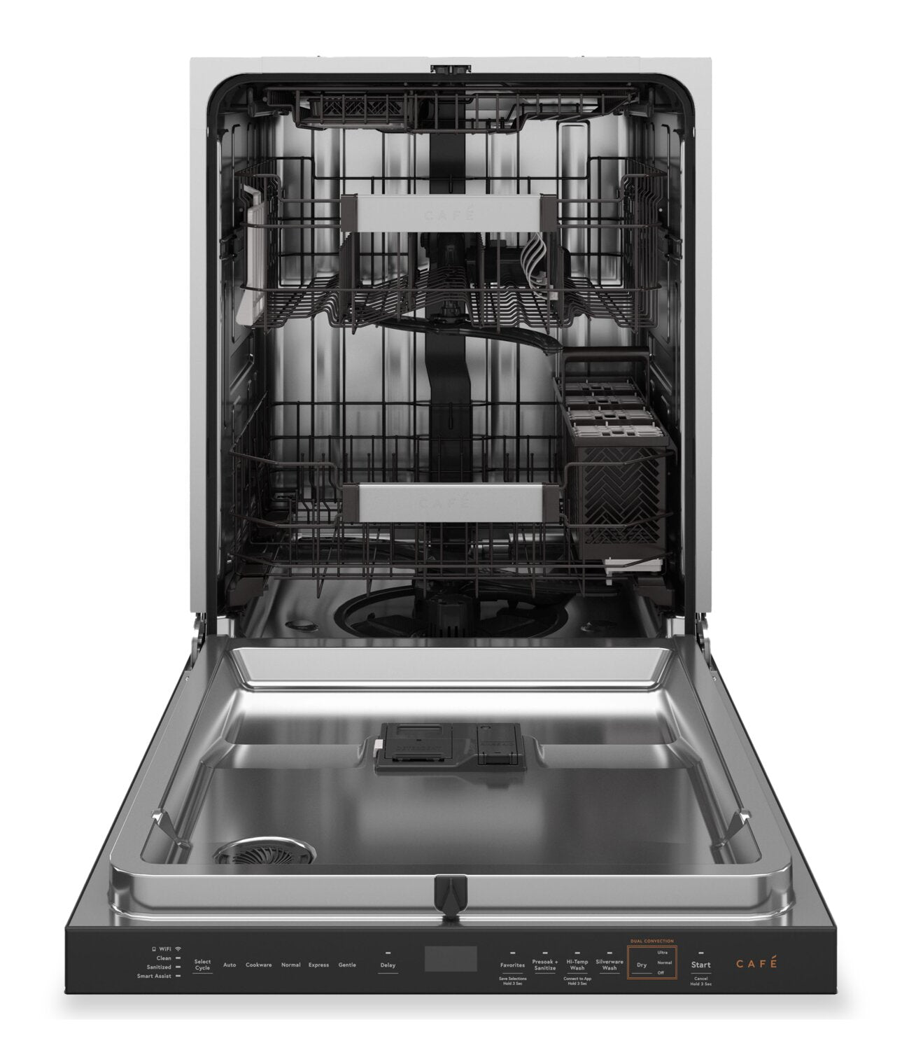 | Renseignements supplémentaires | Options de nettoyage : Demi-chargement (sur l’application), nettoyage de bouteilles (sur l’application), démarrage différé 1 h à 12 h, Favoris (sur l’application), arrêt du séchage à air chaud, nettoyage à température élevée, verrouillage des commandes, séchage normal, prétrempage et désinfection (certifié selon les normes 184 NSF), mode sabbat, nettoyage des ustensiles, mise en marche/annulation, UltraDry, Wi-Fi/compatibilité de commande à distance |