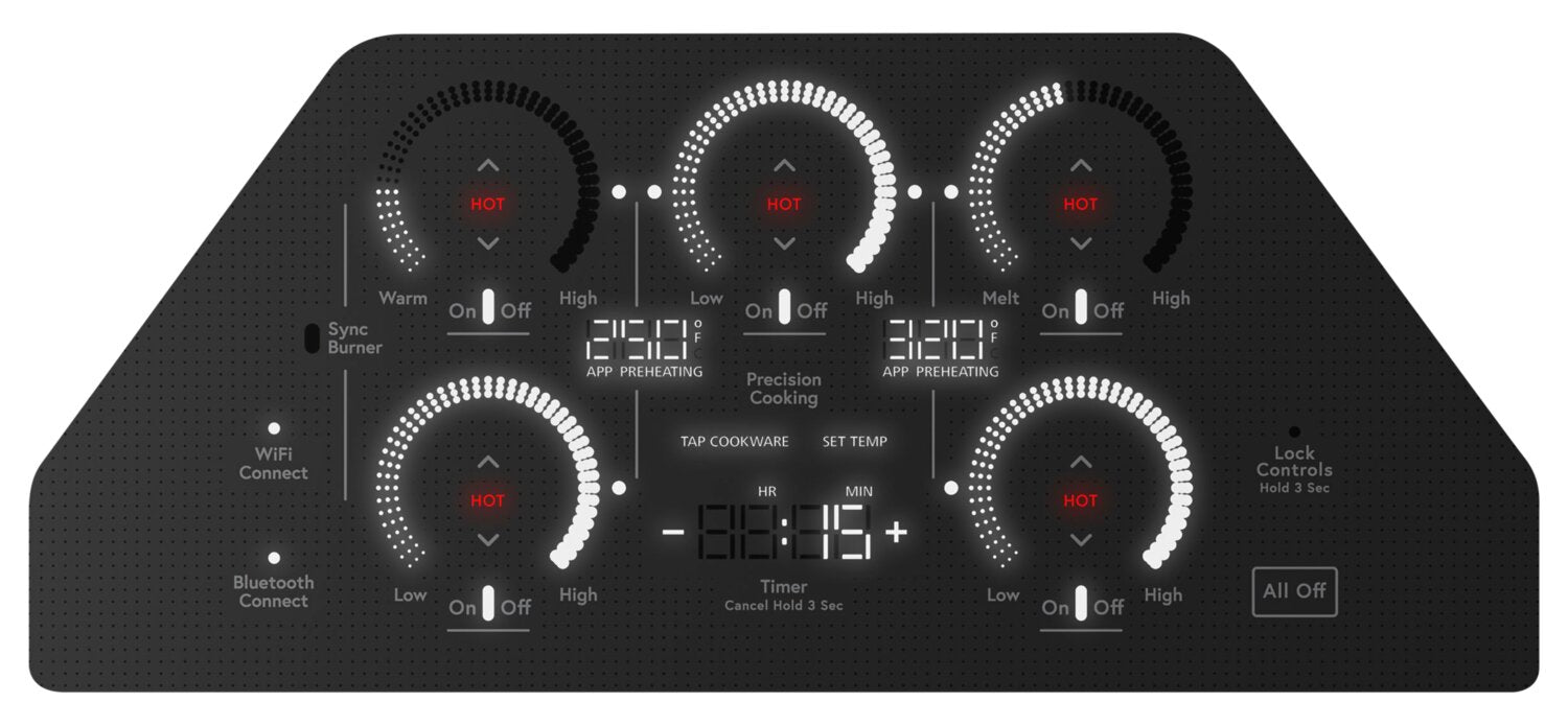 Réactivité et réglage sans effort : Surface facile à nettoyer : Cuisson guidée : Ébullition rapide : Commande de température précise : Éléments synchronisés : Surface sécuritaire : Wi-Fi intégré : |
