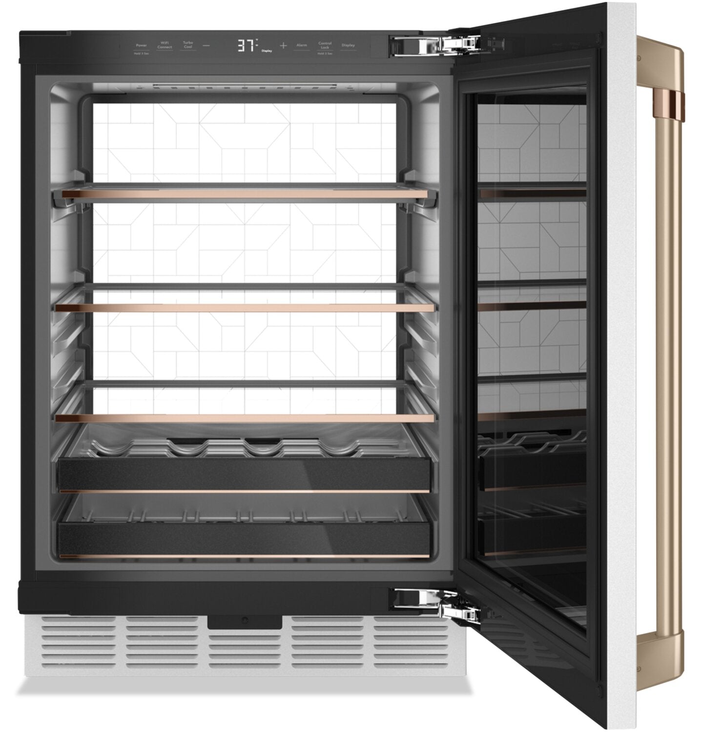 Capacité de 14 bouteilles et de 126 canettes : Mur illuminé à DEL : Zone de rangement pour bouteilles magnum : Technologie intelligente : Au moyen de l’application SmartHQMC, vous pouvez modifier la température ou diminuer la lumière du mur illuminé à DEL, et ce, à distance. De plus, vous profiterez des toutes dernières fonctionnalités de la maison connectée grâce à de nouveaux modes et à des mises à jour. Tablette QuickSpaceMC : Installation affleurée : Charnières de porte articulées : Porte en verre à triple couche : |
